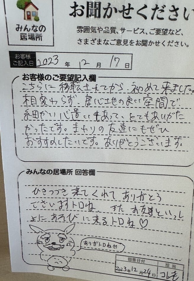 皆様のご支援により、#みんなの居場所『たかしの家』2023年内の営業が、無事終了いたしました。