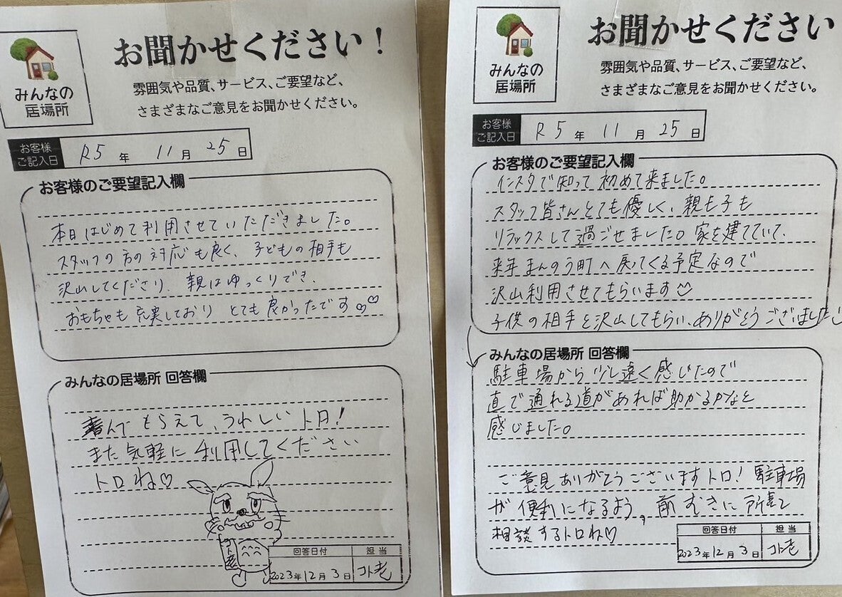 「外遊びするのが寒い時期で困ってたけど、ここなら一日中くつろげて助かる」