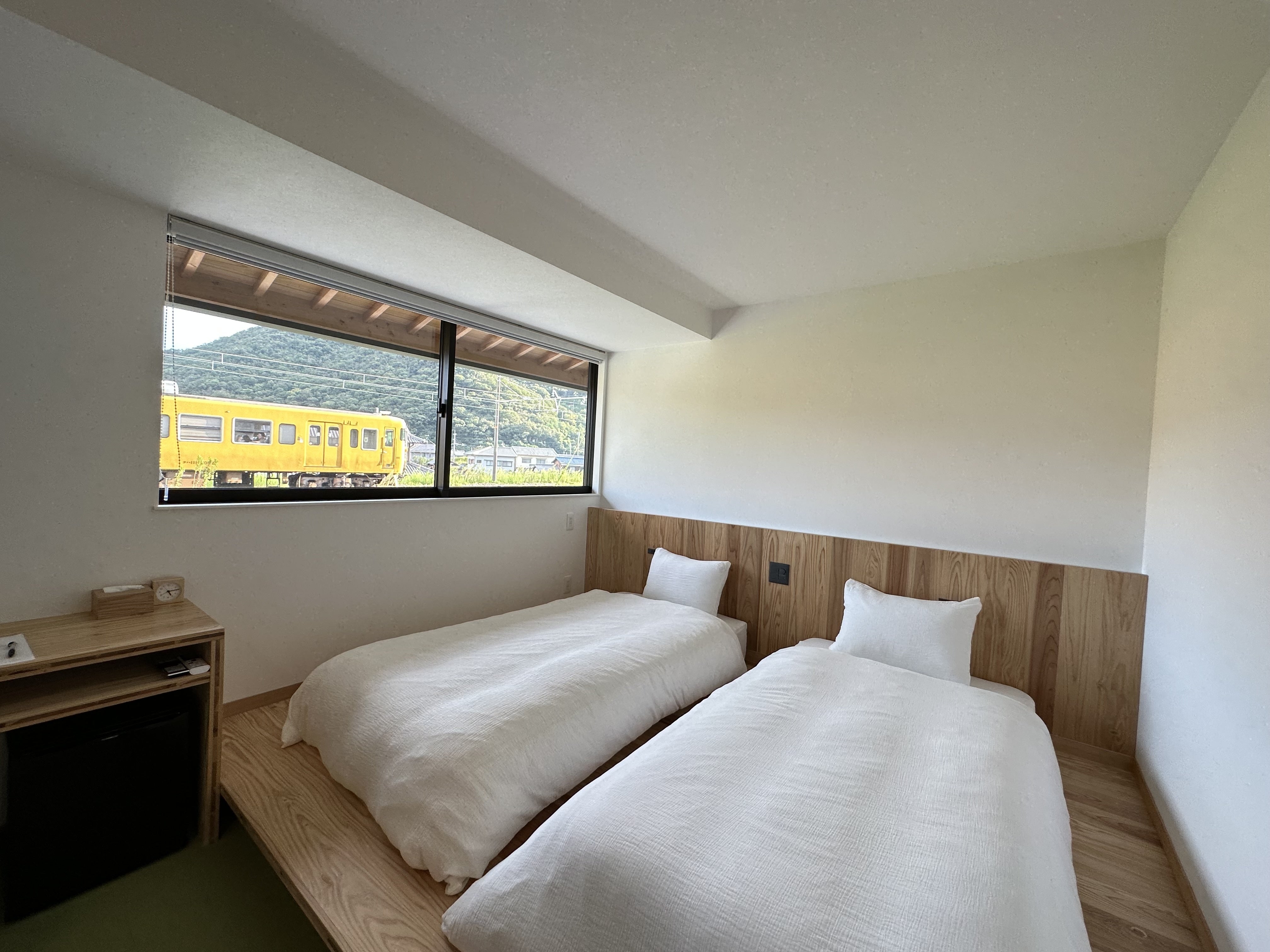 レトロビューにお泊りの際は、窓から見える山と電車の写真撮影に挑戦してみて下さいね!