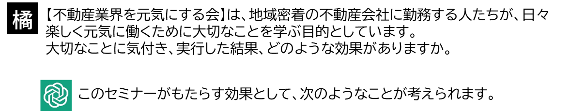 最先端のAIであるChatGPTを活用し、セミナーの企画を考えました。また、AIの視点からセミナーで学ぶ3つのポイントを深掘りし、より人間的な視点で考察していきます。