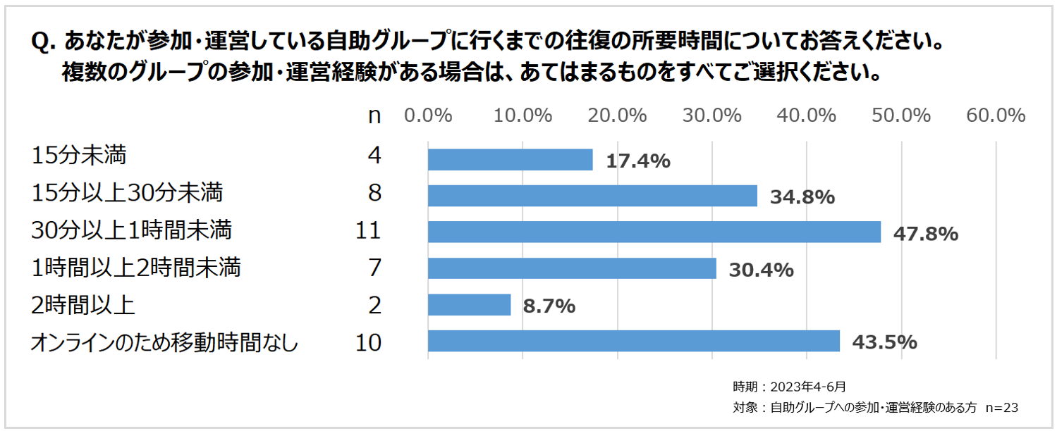 アンケートによると、対面でのセルフヘルプグループと同じくらいにオンラインでのセルフヘルプグループが行われています。