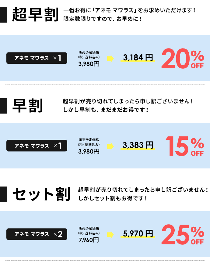 ・本プロジェクトを通して想定を上回る皆様からご支援を頂き、現在進めている環境から量産体制を更に整えることができた場合、正規販売価格が販売予定価格より下がる可能性もございます。