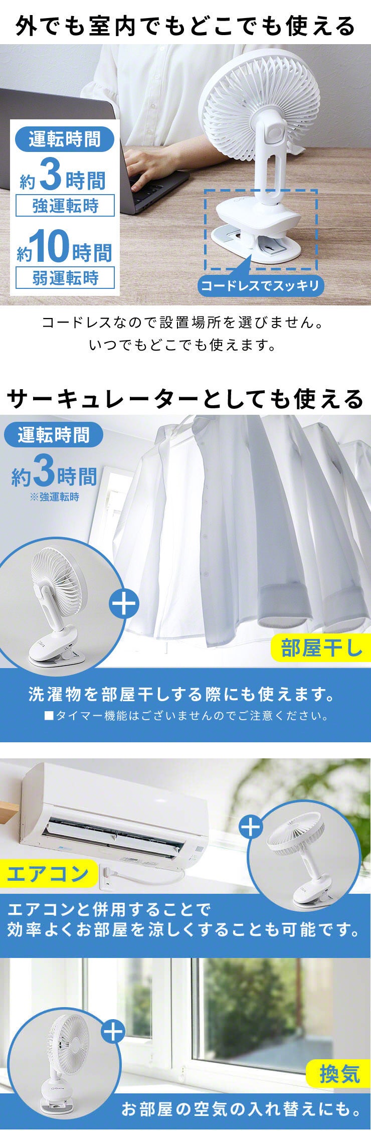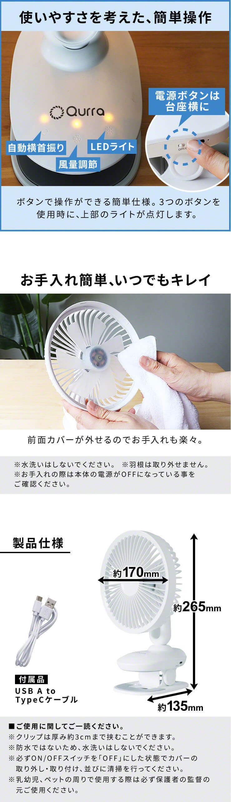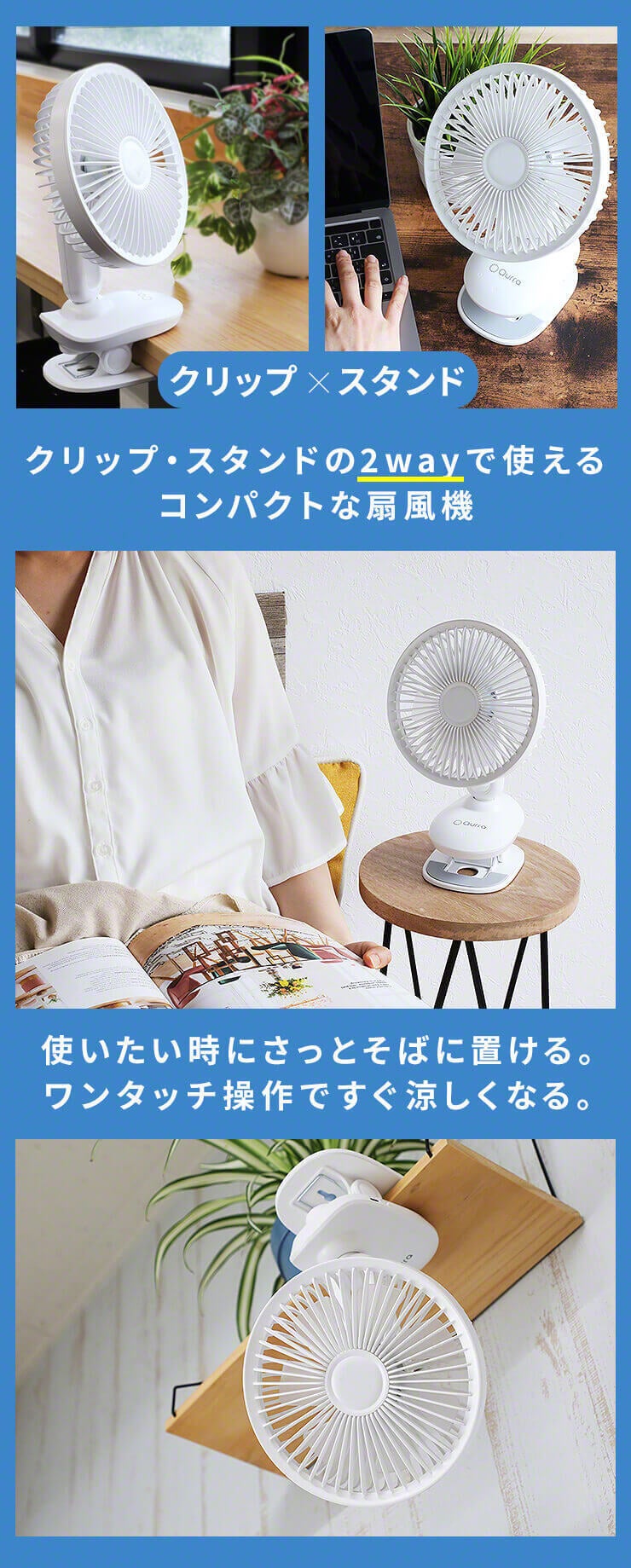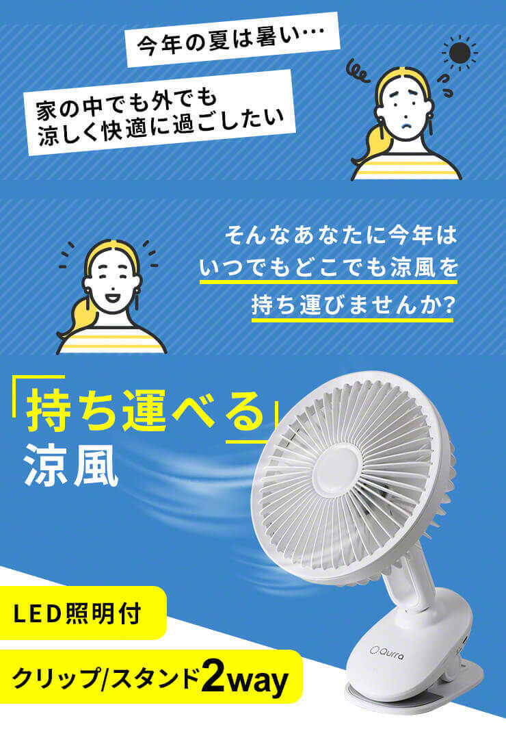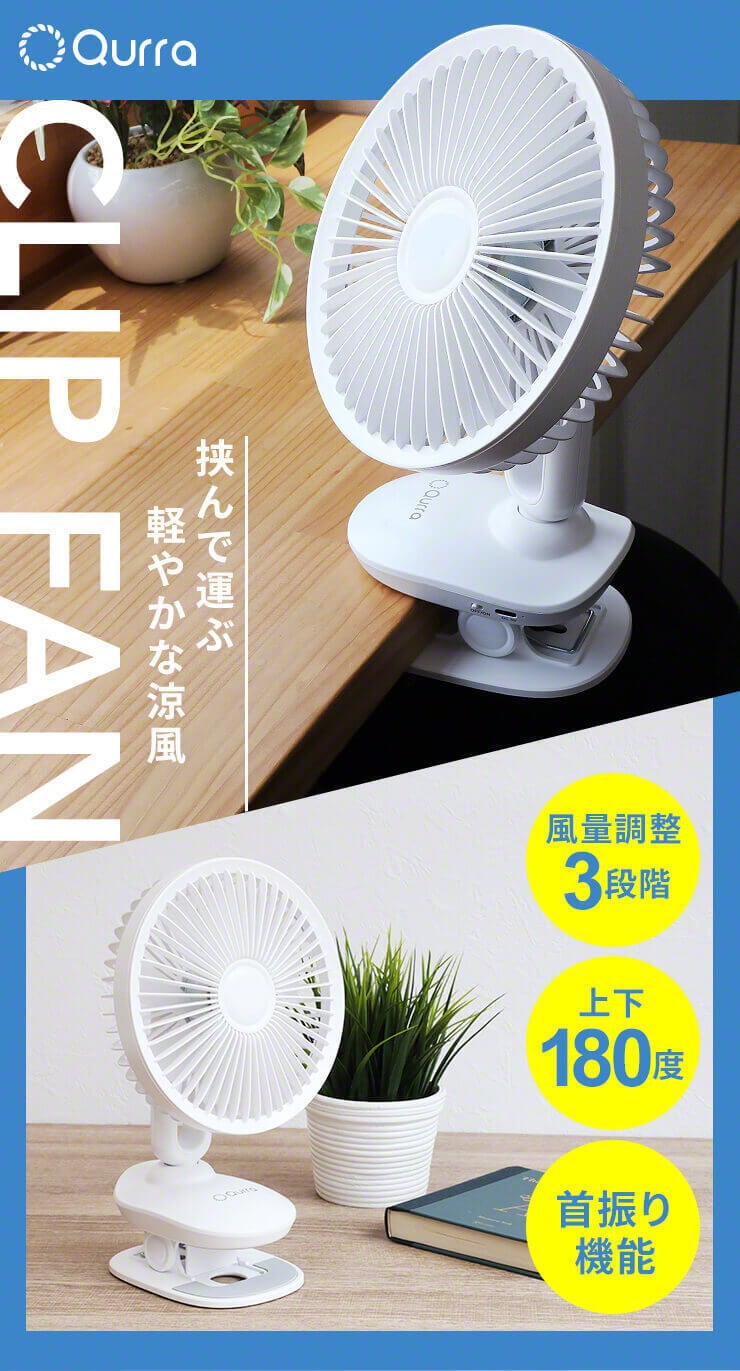 商品名:Qurra クリップ扇風機 Anemo マワラス ホワイト
