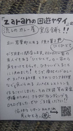 本日発売の「散歩の達人」の立川、国立、国分寺特集では、zaranの回遊ヤタイも取材していただきました。本文に、店舗探し中の話も掲載されていますが、ぜひぜひお手に取って見てみてください☆知ってる顔がたくさん出ていて、たのしいです!