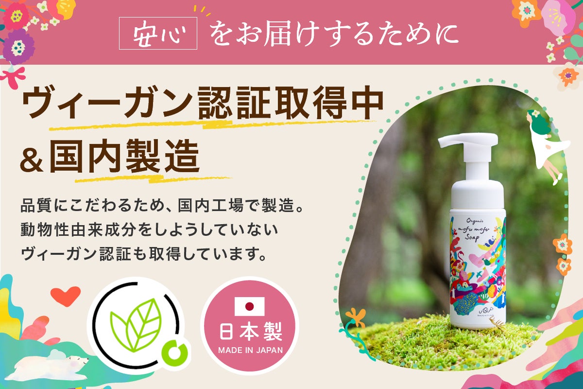 動物由来の原料を使用せず製作過程での動物実験もしていない事を証明するヴィーガン認証※1を取得中です。