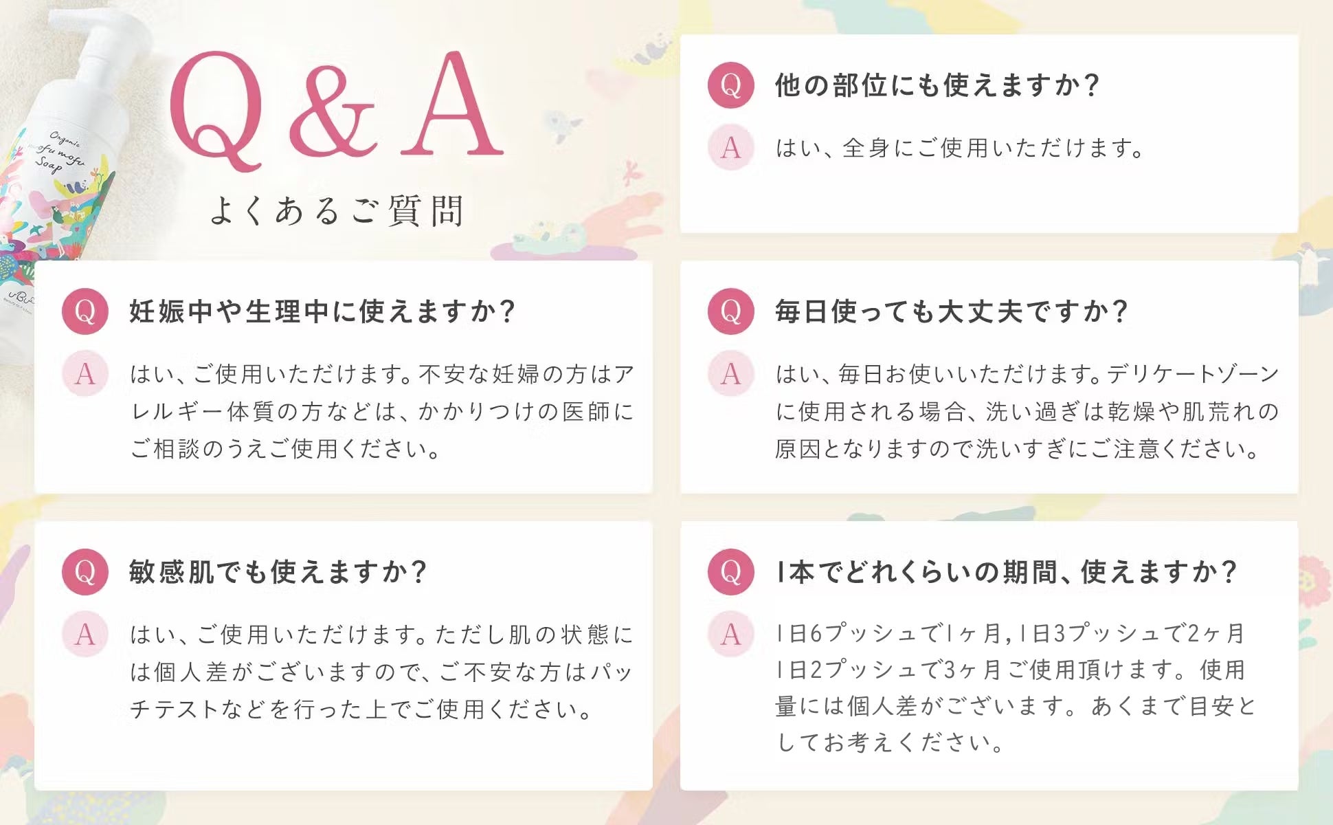事前のアンケートにて、家族や周囲の方に「デリケートゾーン用のソープ」だという事が分かると恥ずかしいとのご意見を沢山頂きました。