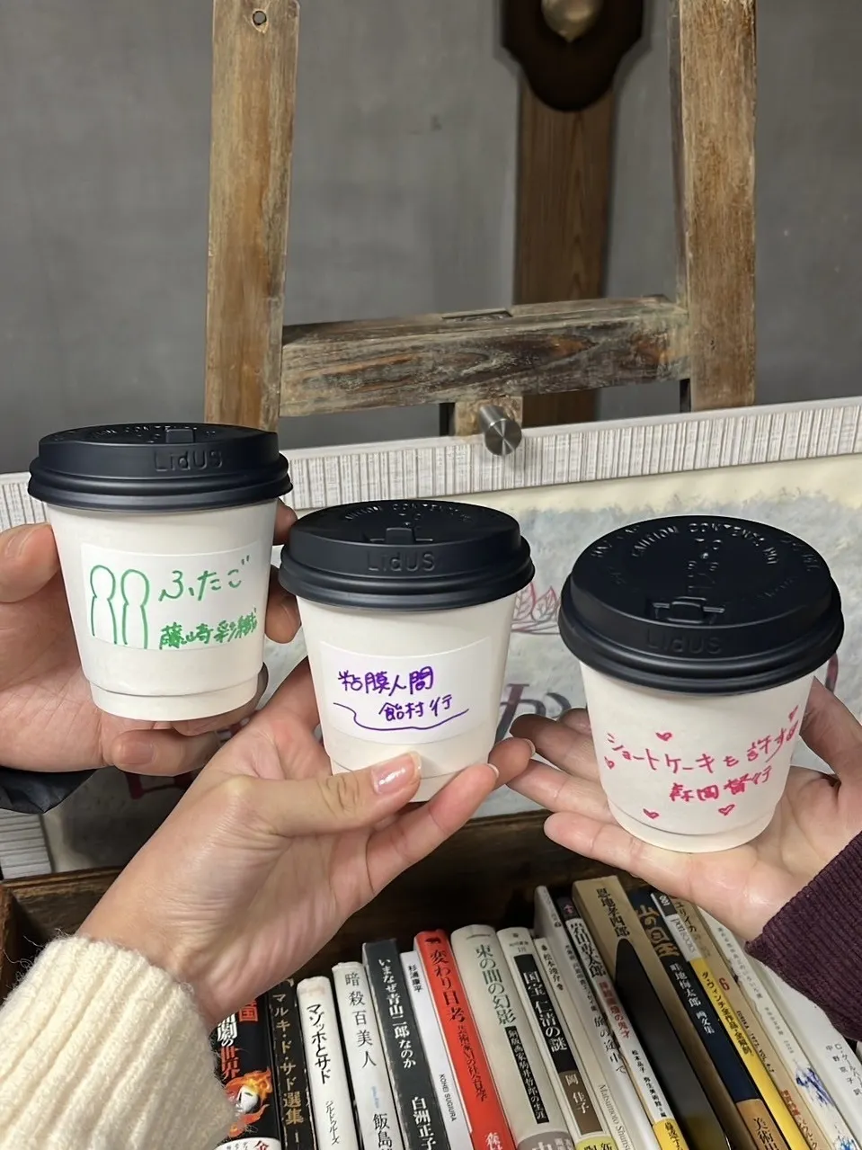 ドリンクのコップには本の題名を書いてお出ししたのですが、お客様と本の話をするきっかけにもなり嬉しく思いました。