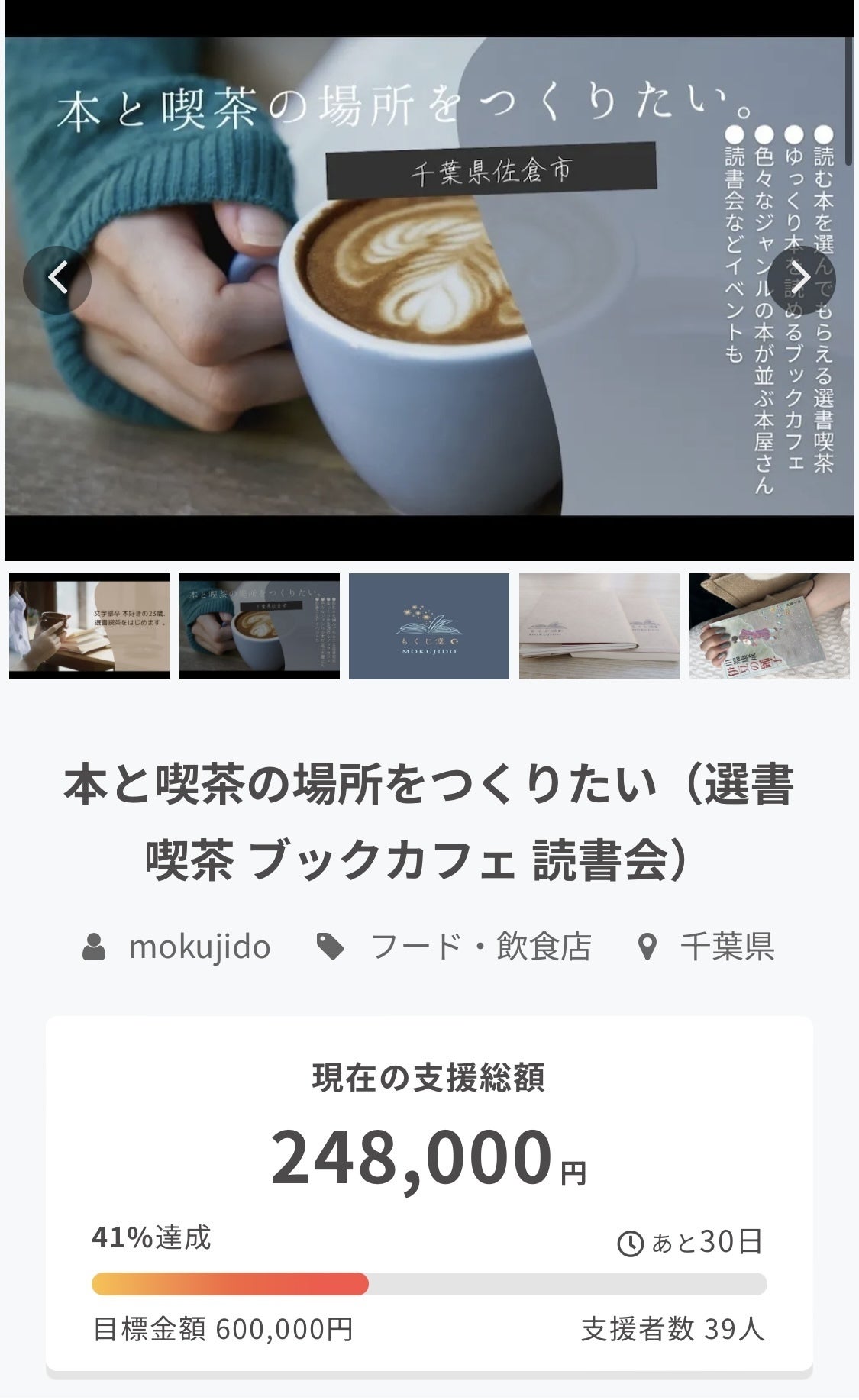 これまで39名の方にご支援いただき、総支援額248000円、目標達成率41%となりました。