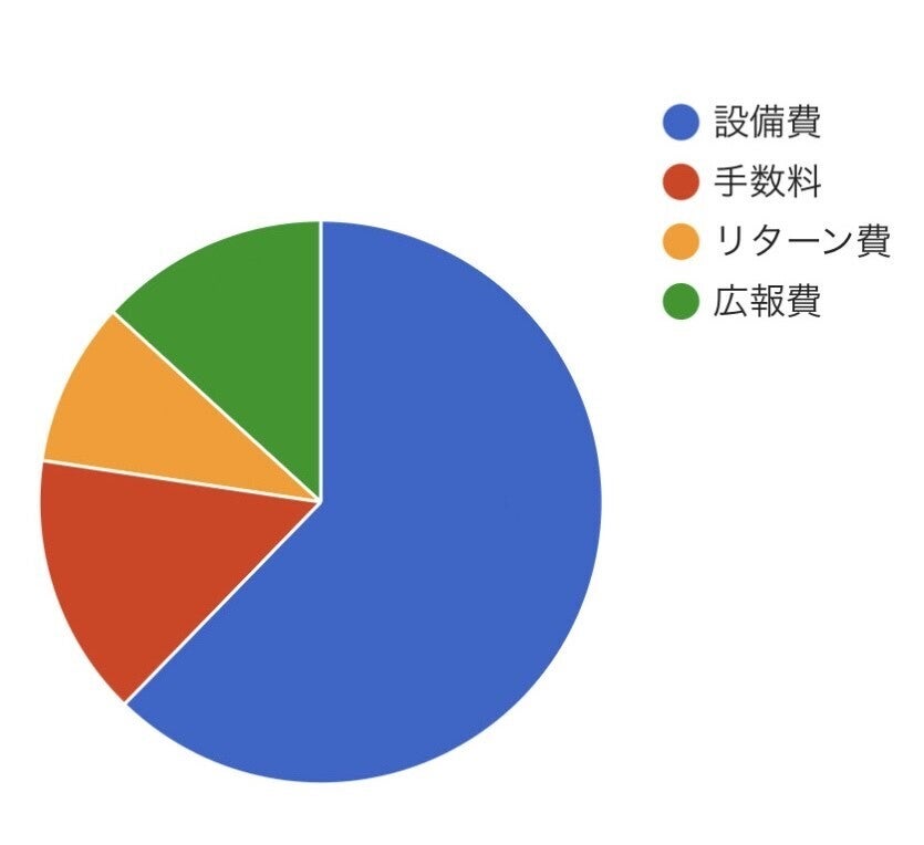 ●設備費(エアコン、照明器具をはじめとする内装、看板、厨房設備工事等に使用):約39万円