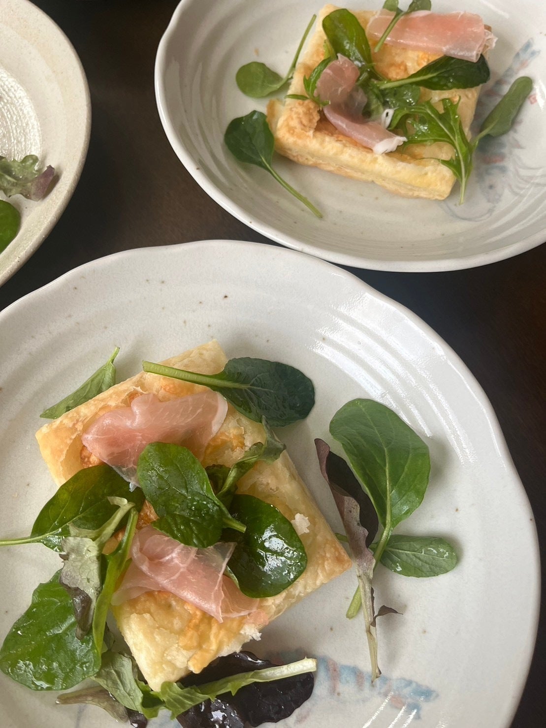 ・サクサクのパイ(生ハムやチーズ、ベビーリーフを載せたもの/バナナやキャラメルソースを使ったもの)