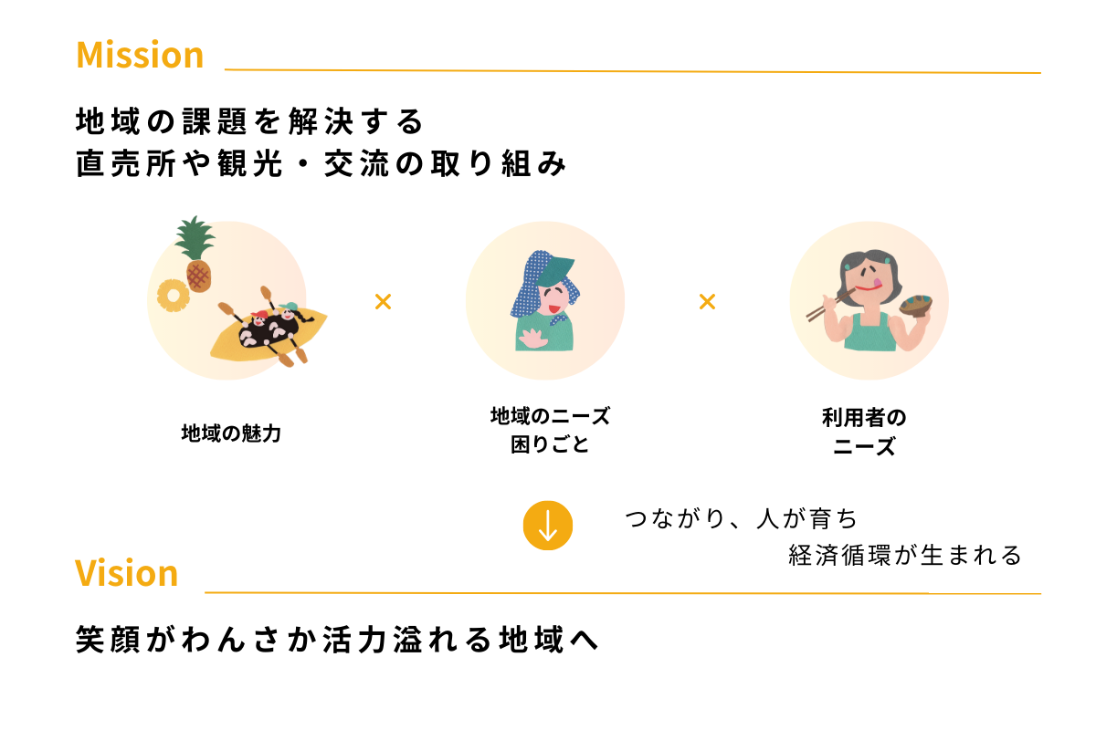 地域づくりの拠点として過疎化による地域の問題を解決しながら地域全体で稼げる状況をつくり、自立経営を行うと共に利益を地域の発展に投資・還元していきたいと思っています。