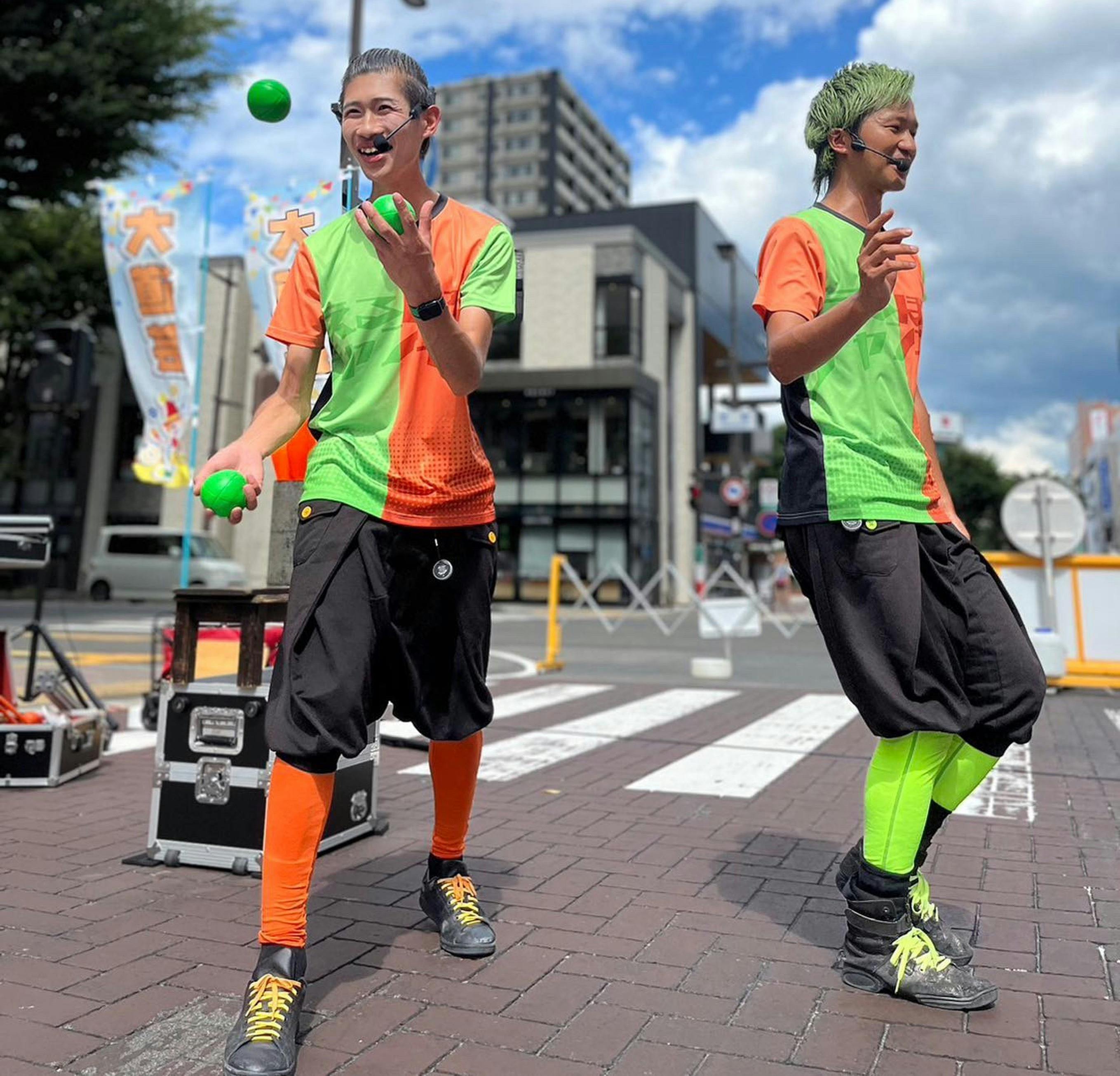 普段は、私たちが住んでいる福島県郡山市を中心に、イベントなどでこのような大道芸のパフォーマンスをお届けしております。