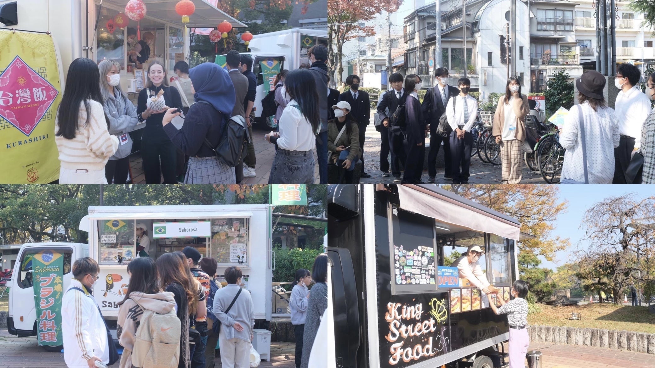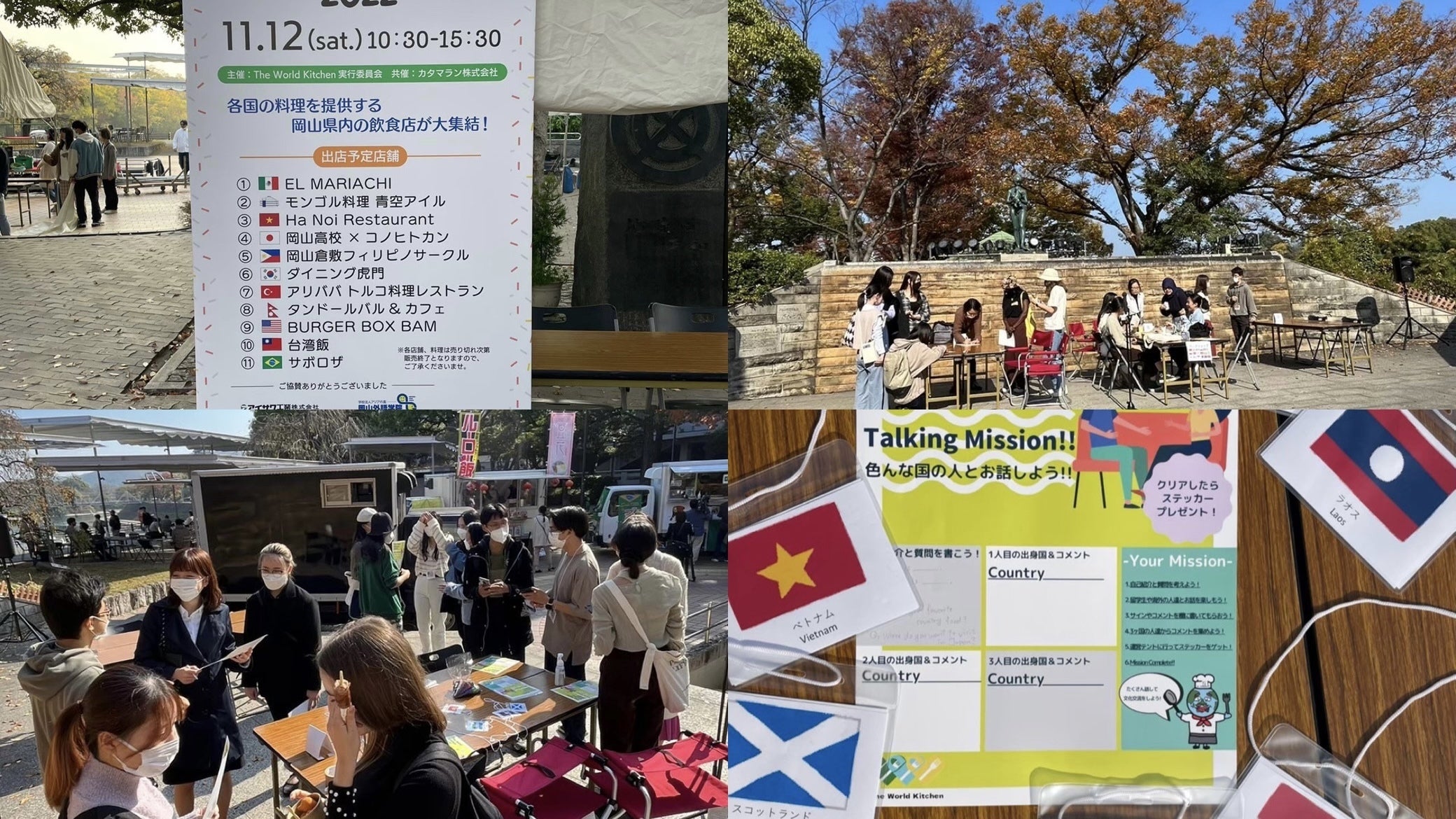 学生、ファミリー、留学生など、岡山に住む様々なバックグラウンドを持った方々が世界各国の食を楽しみ、交流している光景に