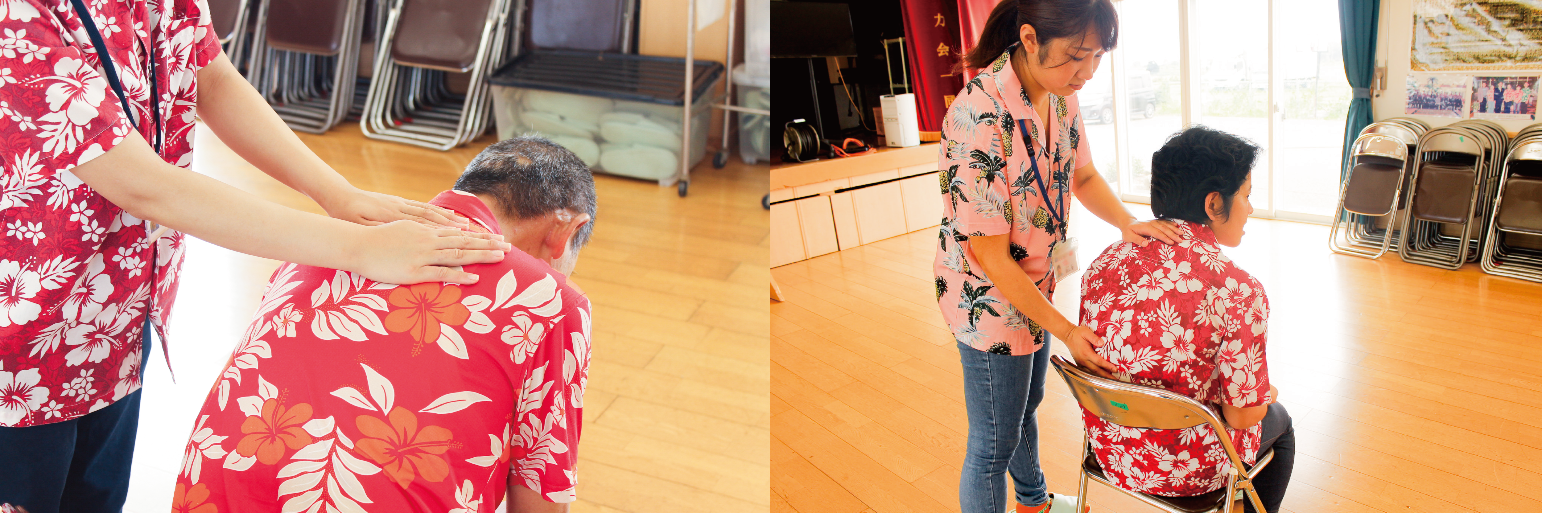 そのふれあいの中で、今日は機嫌が悪い、手足が冷たい、体が強張っている等、心や体の変化にも気づきやすくなりました。また、利用者さんの背中をさすりながら、普段うるさく言う立場になっている自分を反省する時間にもなりました。