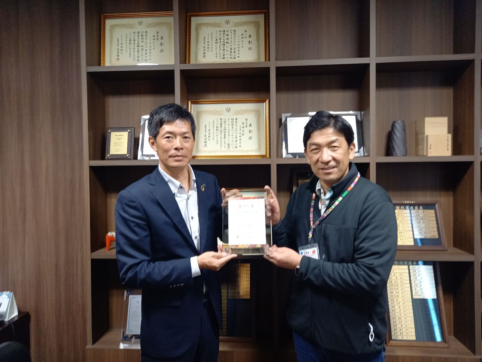 フレクストロニクスインターナショナル様よりご支援賜り、感謝状をお渡ししました。大きな紙袋の中に、フレクス様の従業員様や労働組合様のチャリティイベントで集めてくださった支援金が入っておりました。中は金種ごとにわけられた袋。 一つ一つの心遣いにフレクス様の企業風土を感じました。障害者雇用も積極的に取り組まれ、意見交換も行いました。そして写真撮影の際には利用者様が描いた絵を背景に撮らせていただきました。愛溢れる時間でした。