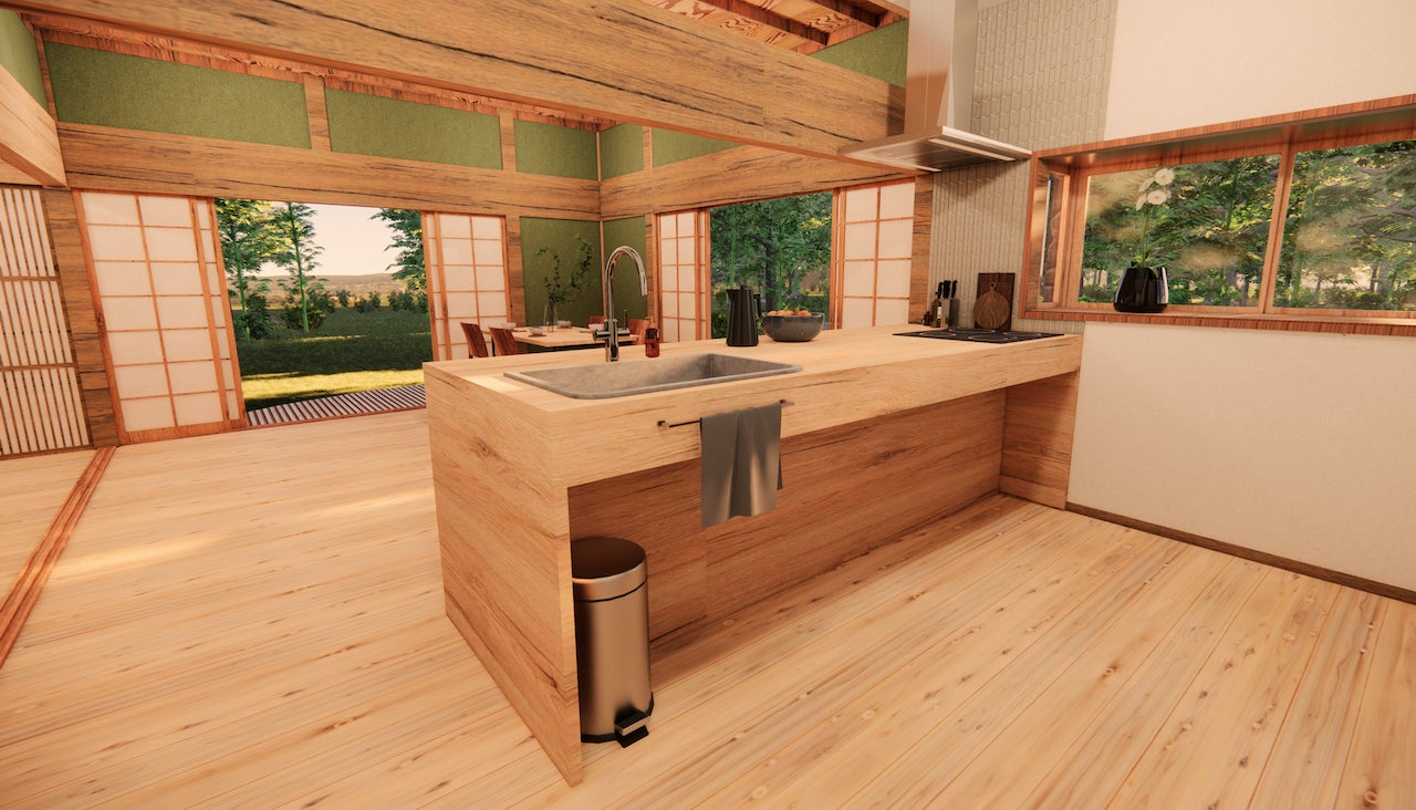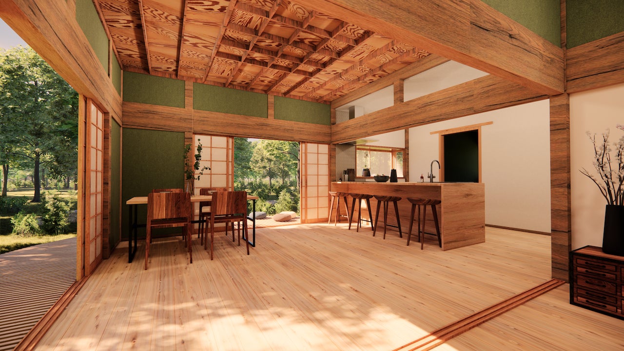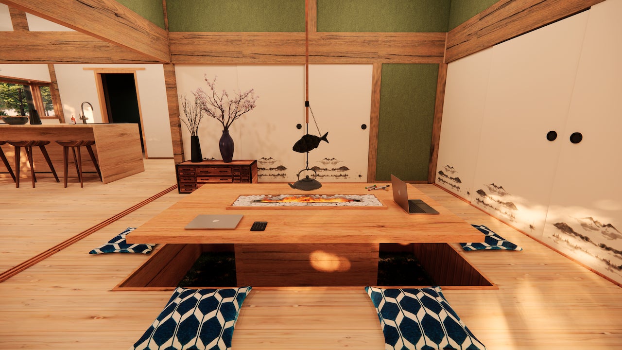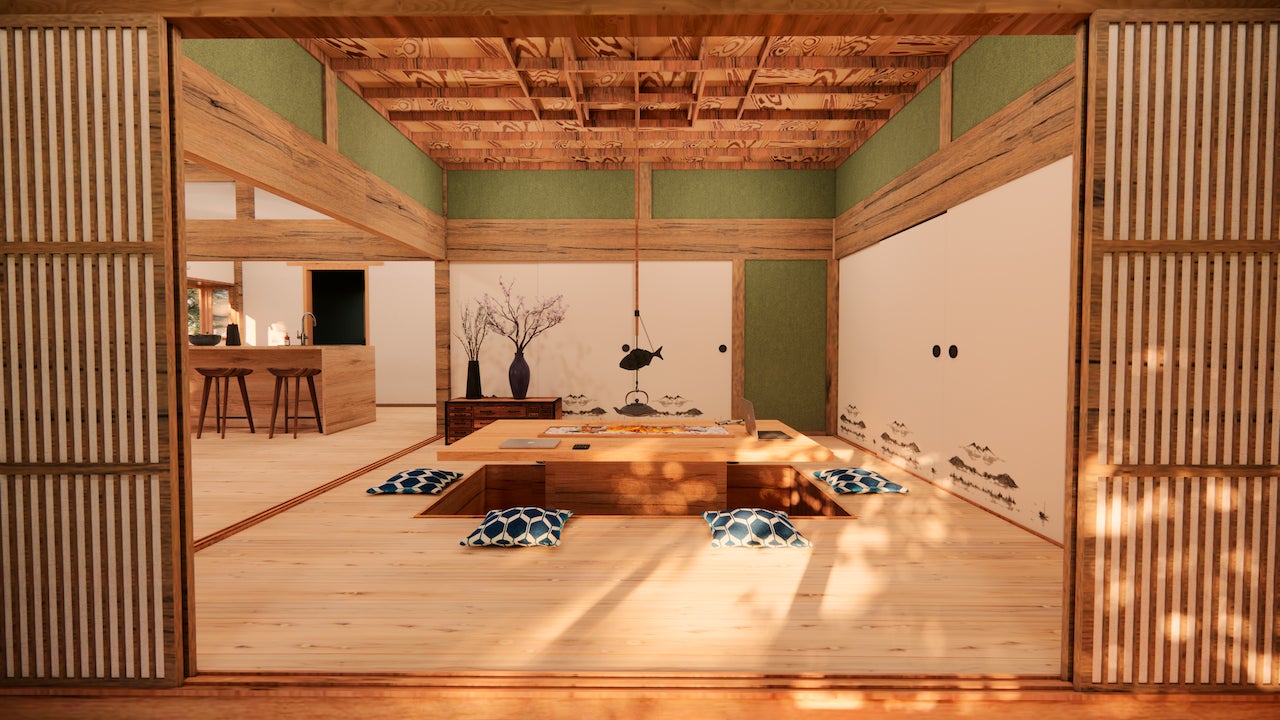 囲炉裏の空間を中心に、アクティビティ体験やコミュニケーションができる環境がここにはあります。