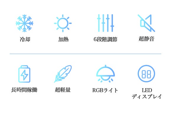 冷却3段階、加熱3段階の全6段階の温度調節が可能です。ボタンひとつで季節に合わせた快適な温度を選択できます。