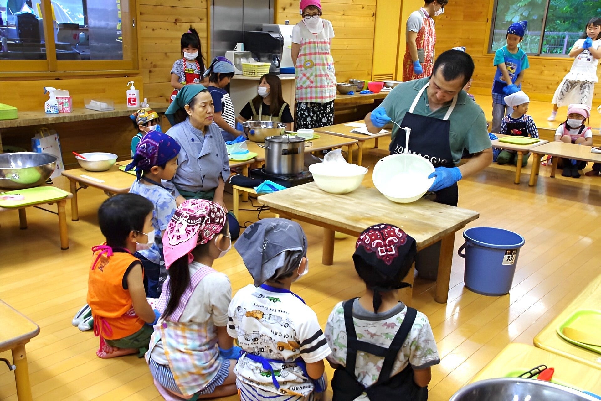 幼稚園でのチーズづくり教室の様子