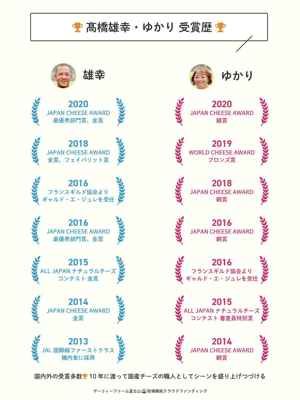肉牛農家、乳牛農家出身の夫婦で、チーズづくり歴は2人とも21年。半生を酪農とチーズづくりとともに歩んできました。