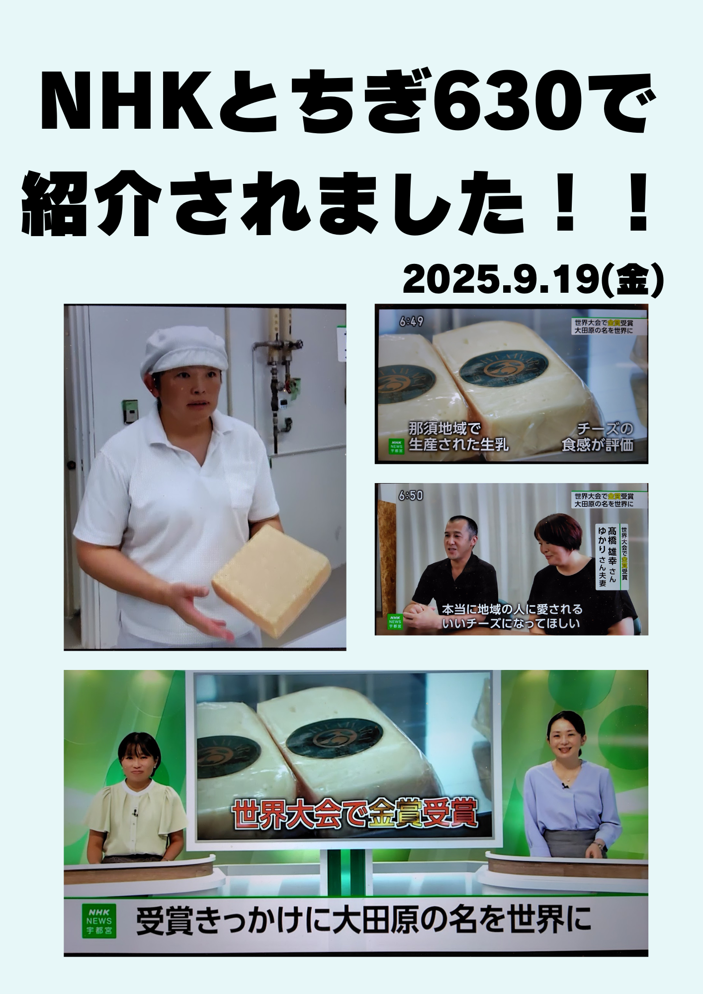 2025/09/28 23:349月もあっという間に月末になり、牧場の周りでは彼岸花も咲き、稲刈りもだいぶ進んできたような秋真っ盛りとなってます。皆さま、いかがお過ごしでしょうか?活動報告もなかなか出来ずに、申し訳ありませんでした。チーズ工房が2年目に入り、まだまだ販路が伸び悩んでおり苦しい状況でしたが、朗報を報告できます!!9月14日(日)から16日(火)まで、フランスでチーズの国際大会「モンデュアル デュ フロマージュ2025」が開催されました。現在、日本から欧州へは衛生問題などがあり、チーズの持ち込みはそもそも出来ません。そんな中で、農林水産省において国産乳製品等競争力強化対策事業という事業の中で特別ルールを設けて頂き、農水省等国の機関や民間の力を借りて今回大田原チーズステーションとして初めて海外の大会に出品することが出来ました!そして、お陰様でウォッシュタイプのチーズ「大田原」が金賞を受賞することが出来ました!!!今回は、世界中から1,985品集まる中で高得点を頂き金賞受賞となりました!ここに来るまで、農水省等との連絡をギルドクラブジャポンの松成さんが先頭になってご対応してくださり、検疫所や厚労省等へのやりとりも私たちチーズ工房の代わりに行ってくださいました。すぐに、NHK宇都宮局さんも取材、放送してくださりお陰様で大勢のお客様にご来店頂いております。今日現在、「大田原」と「昌」が在庫をついてしまい熟成待ちの状態となってます。これからも、素晴らしい生乳を出荷してくださる酪農家さんのためにも、そしてお世話になっている大田原、那須地域の皆さんへの恩返しのため、そしてそしてクラウドファンディングからずーっと応援してくださる皆さまへの恩返しのためにも、更に品質と生産量を上げて頑張ります!!今後とも応援のほど、宜しくお願いします。 髙橋雄幸・ゆかり もっと見る
