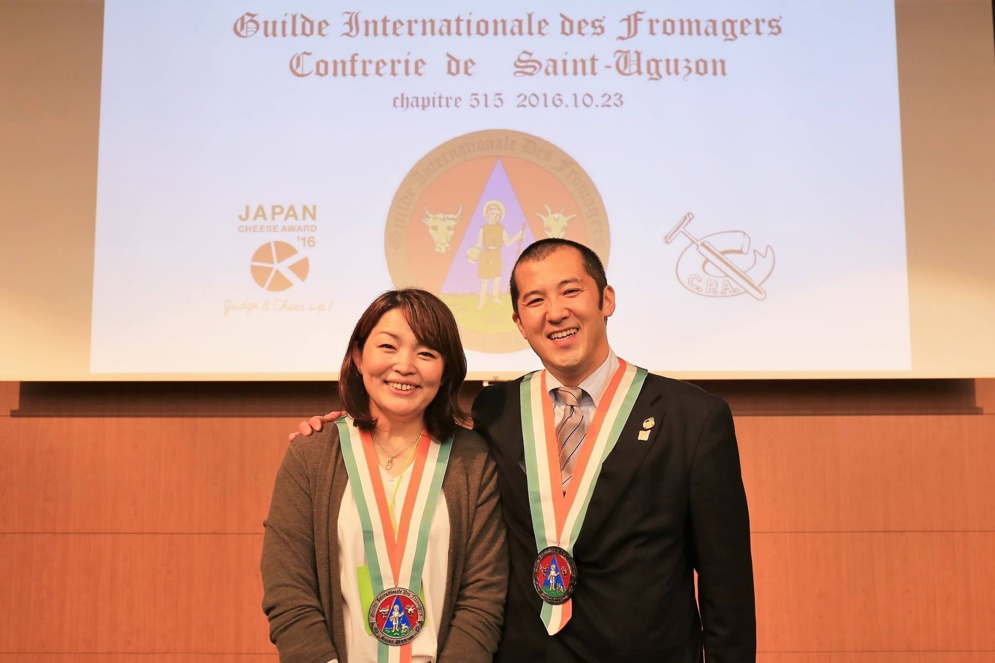 国際的なチーズ協会 ギルド協会より「ギャルド・エ・ジュレ」を受任した時の様子
