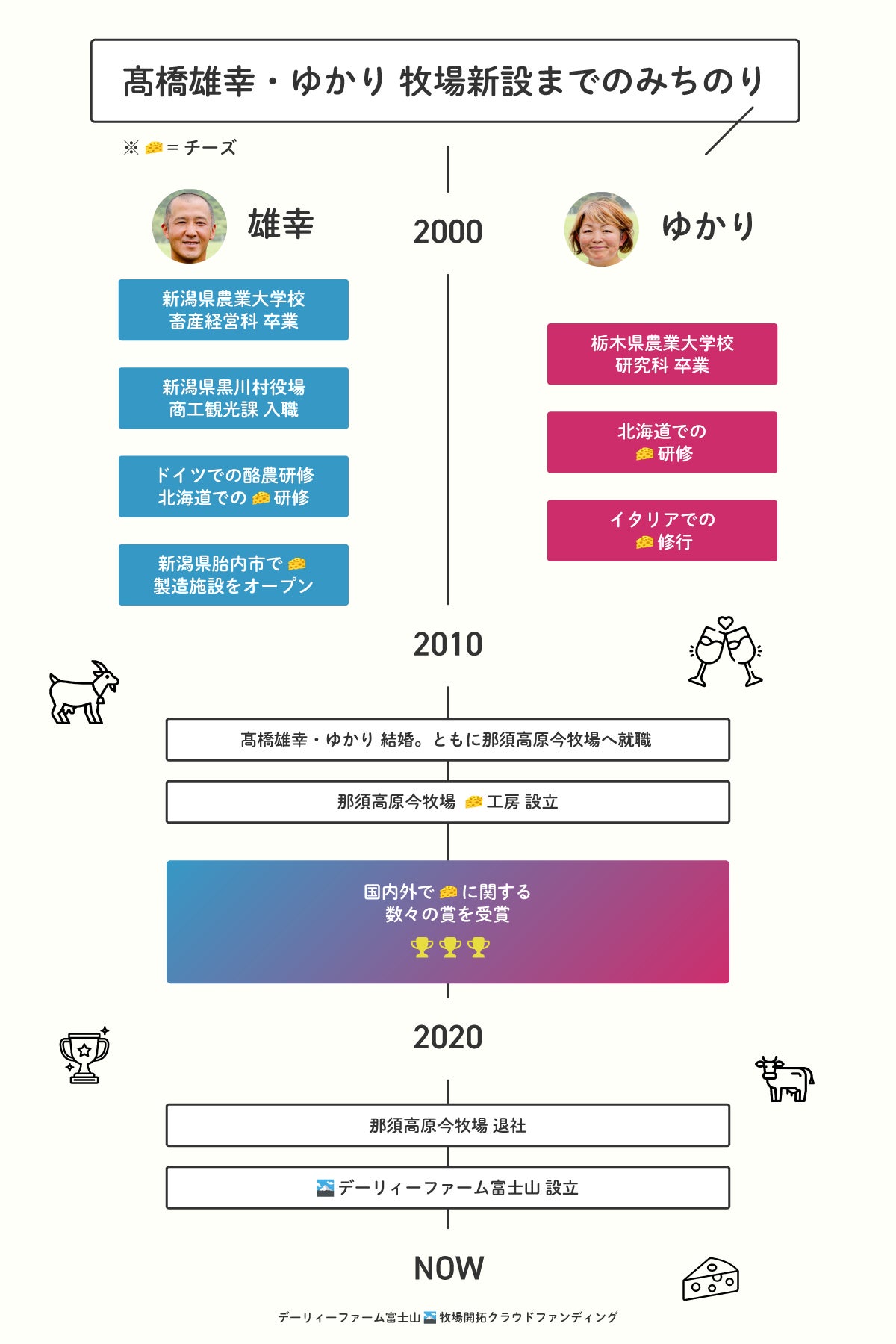 そんな雄幸、ゆかりさんご夫妻が「デーリィーファーム富士山」牧場とチーズ工房を立ち上げると聞いてこれは応援せずにはいられません。何よりお二人は那須地域を愛する同志ですから。まちがいなく、今回のクラウドファンディングはパイオニアスピリットあふれる、心が躍る挑戦になるでしょう!