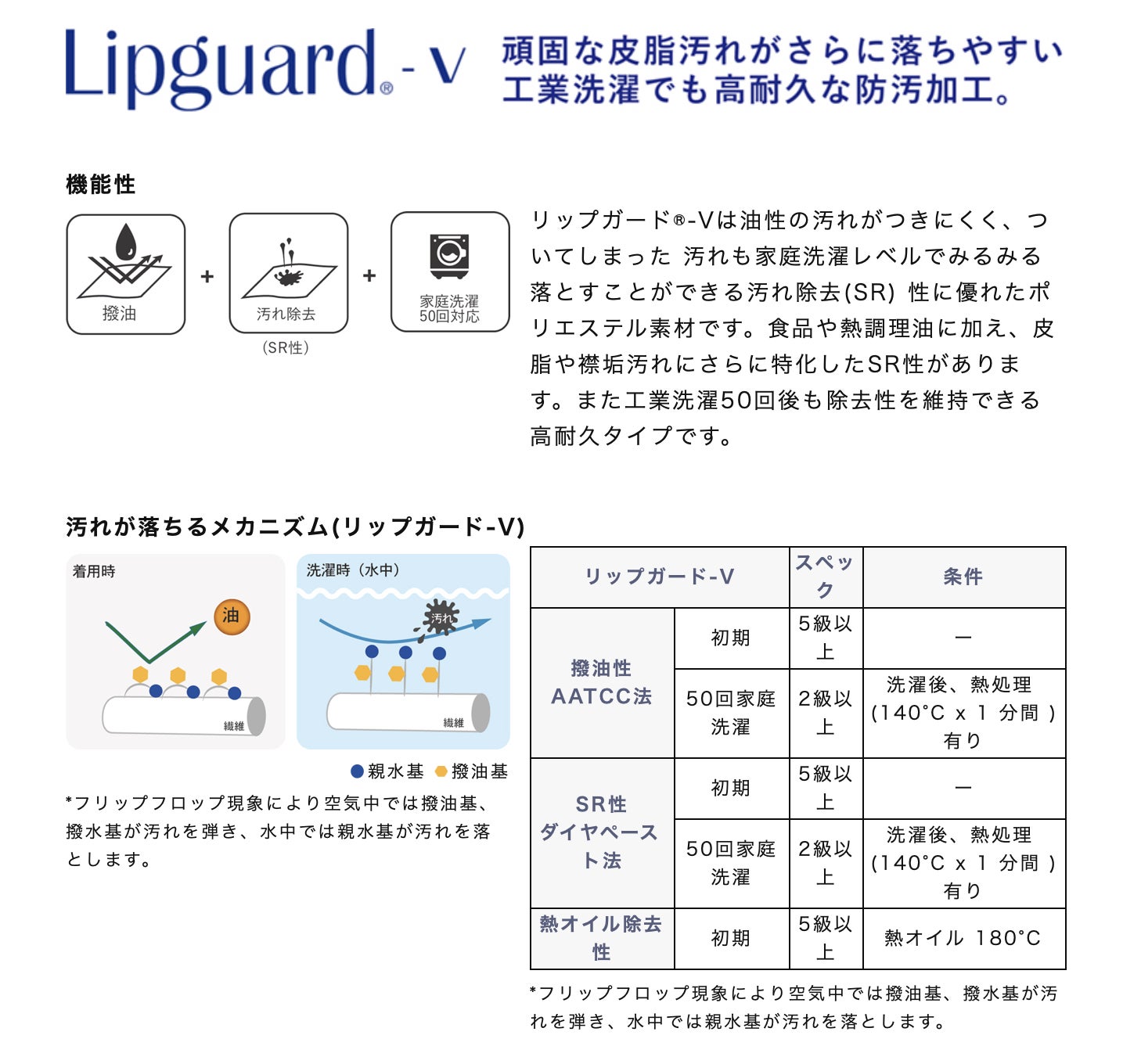 【ガチ白シャツ】が有している日常の「5大汚れを防ぐ」驚愕の耐久防汚性能はリップガードという生地を使用しています。