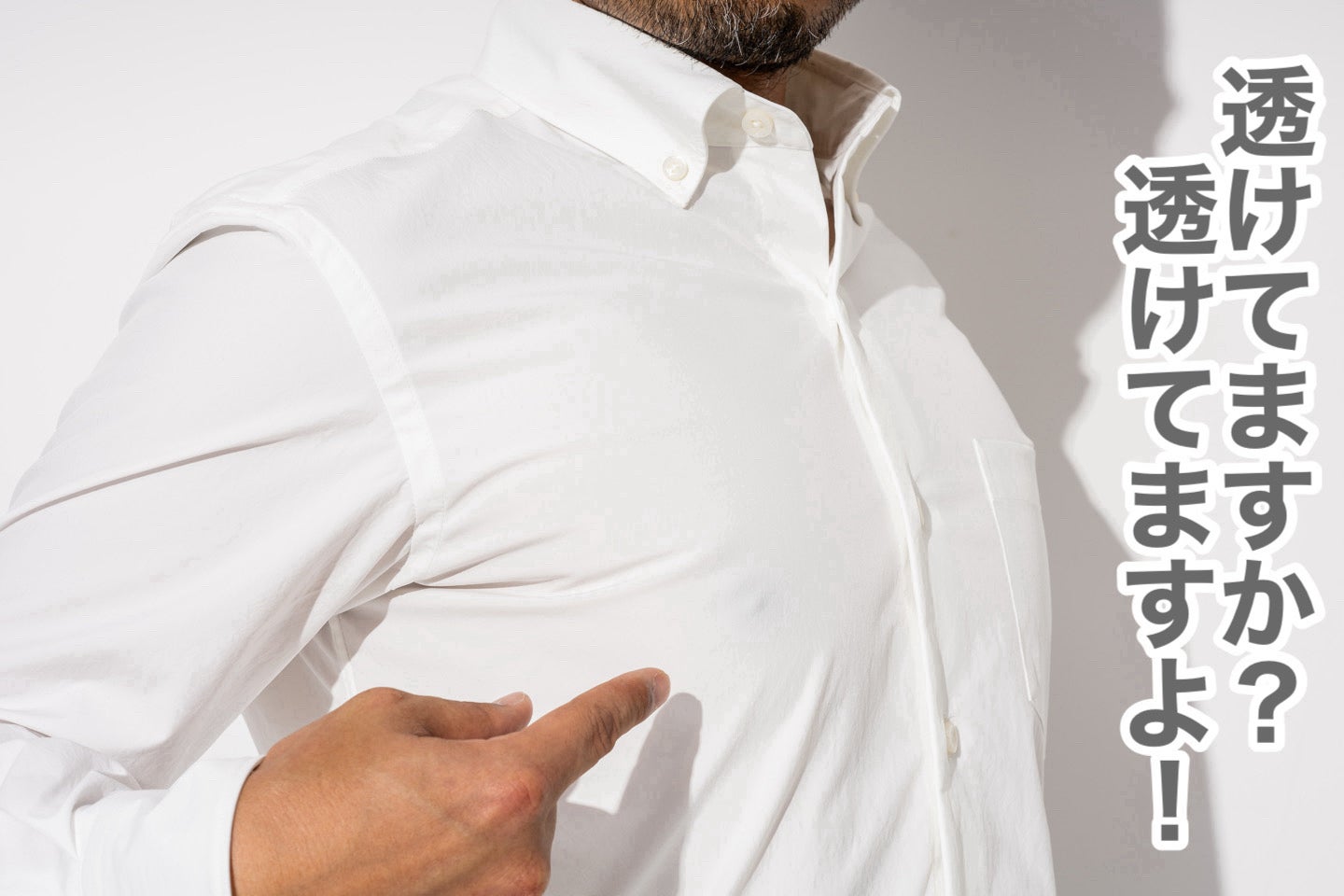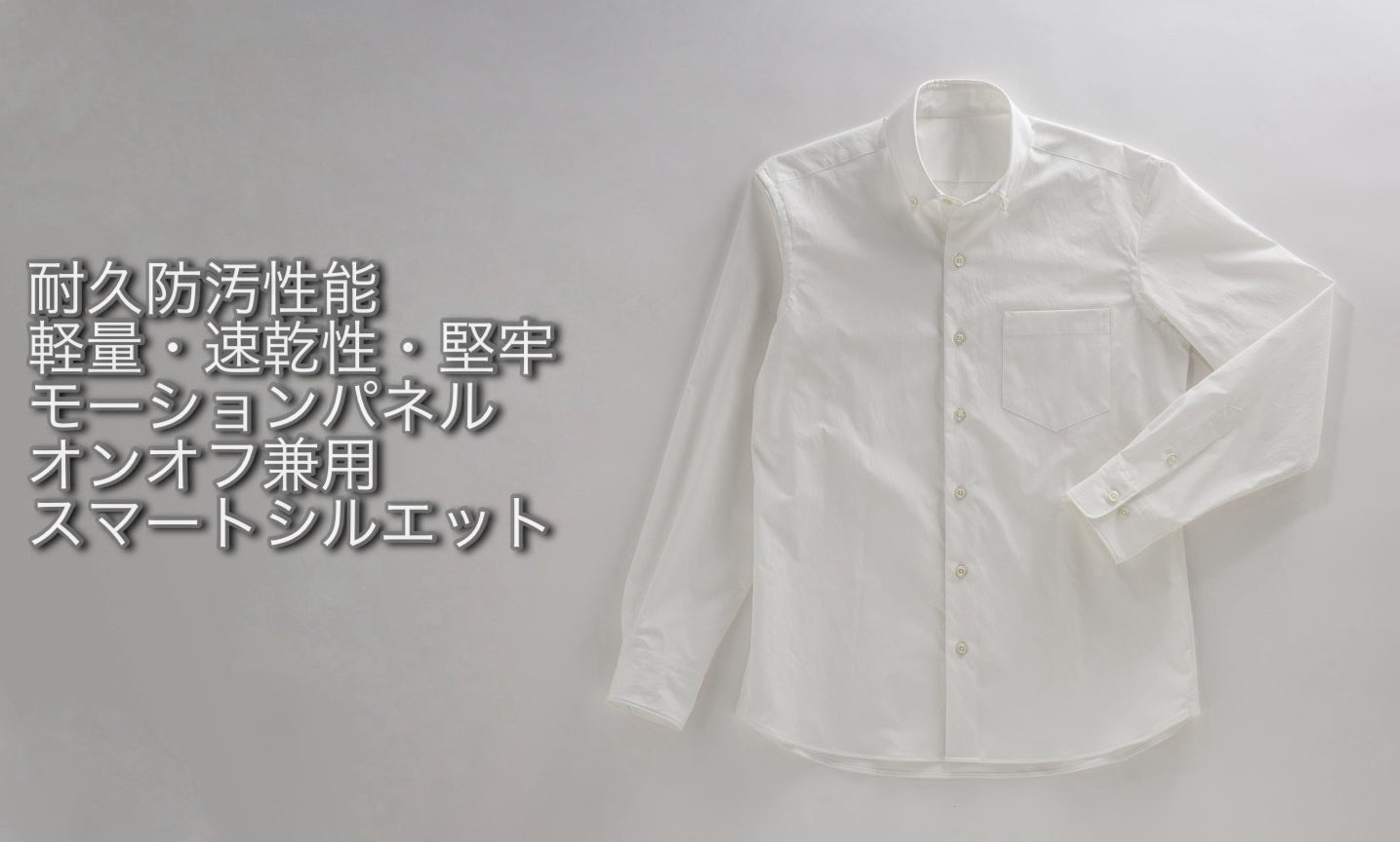 白シャツの概念を覆した日常の「5大汚れを防ぐ」驚愕の耐久防汚性能を有していますが、見た目はお洒落な白シャツにしか見えません!