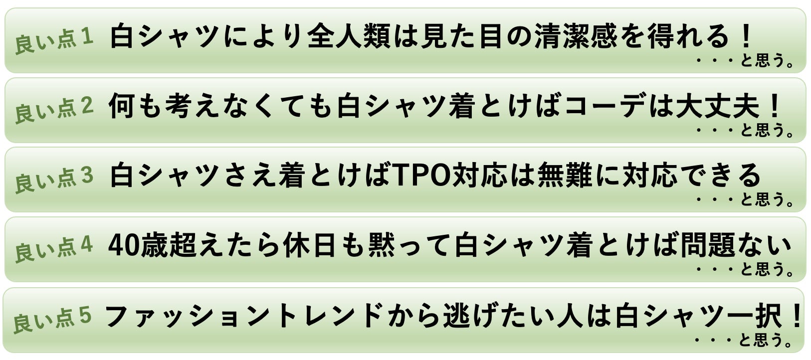 白シャツのデメリットを極限まで削った白シャツへの満足度を格段に上げる【ガチ白シャツ】です。