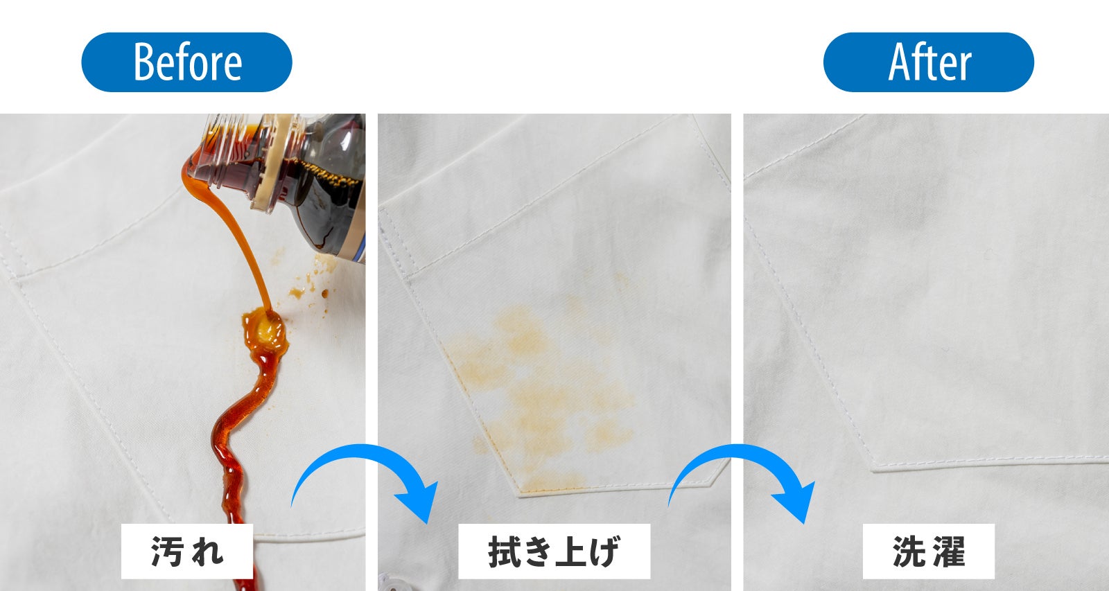 2つの防御体制により、汚れをシャツに残さない!洗濯をすれば驚くほど元通りに白くなります!