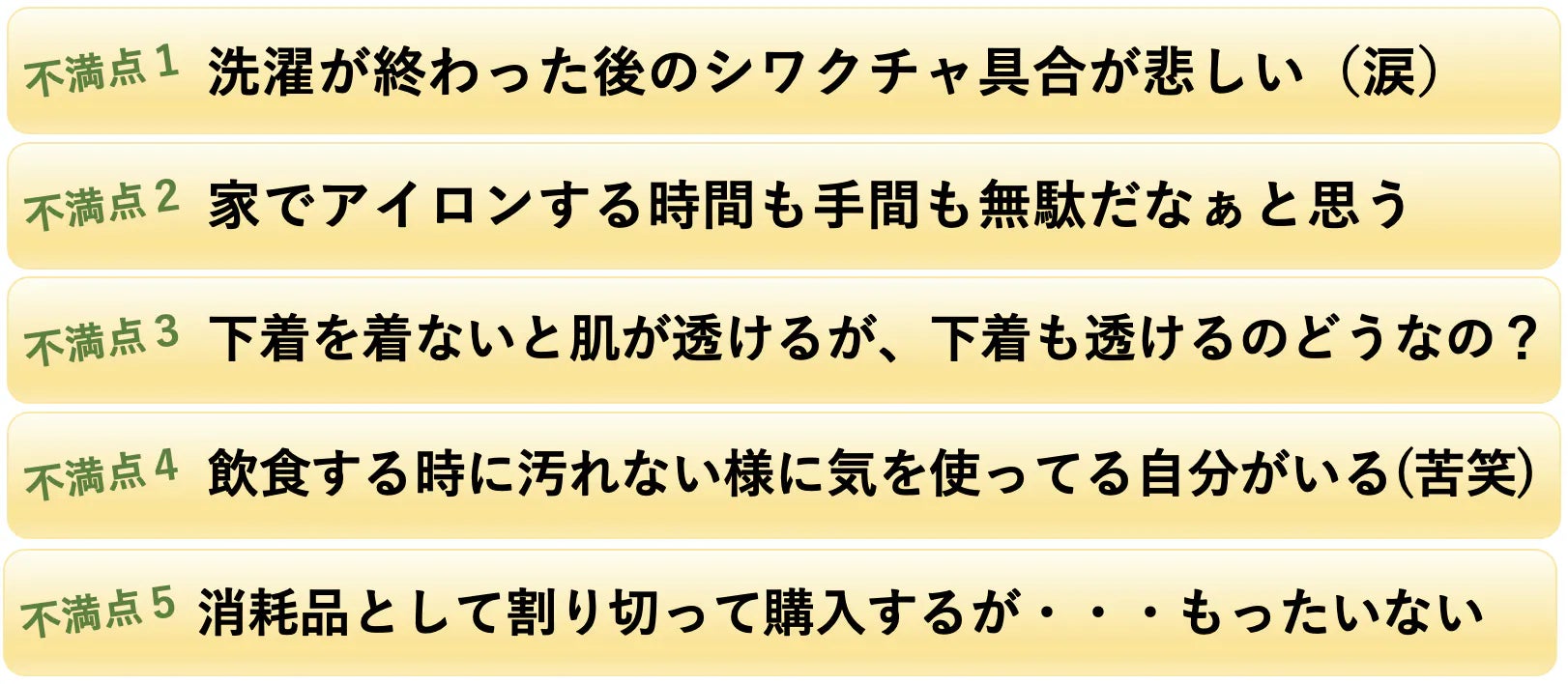 この不満を解決できたら・・・多くの白シャツ好きのストレスを解決できる!