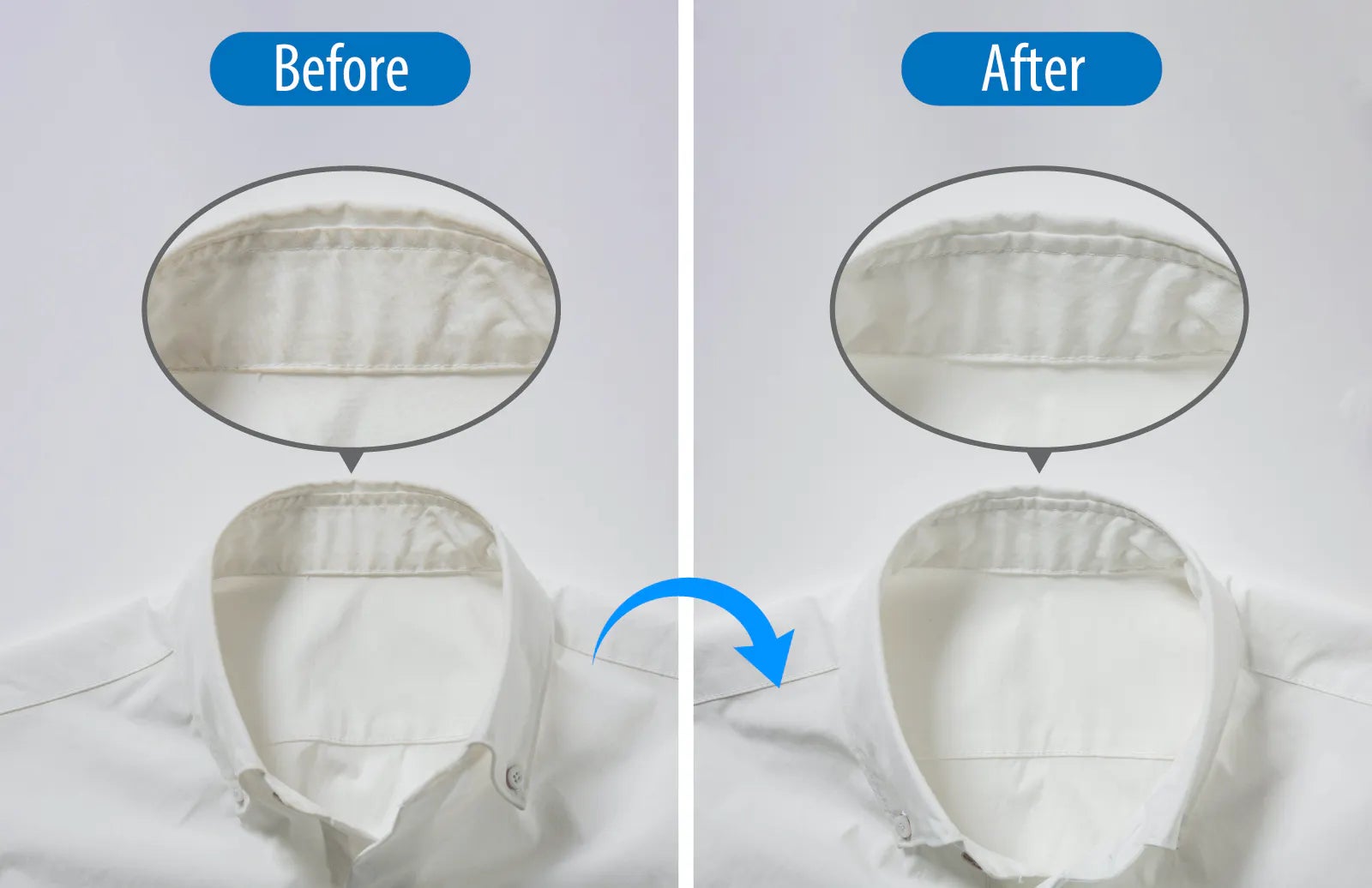 白シャツを破棄する一番の要因は、着用での皮脂汚れの蓄積ですよね。首元・袖口が汚くなります・・・でも大丈夫です!