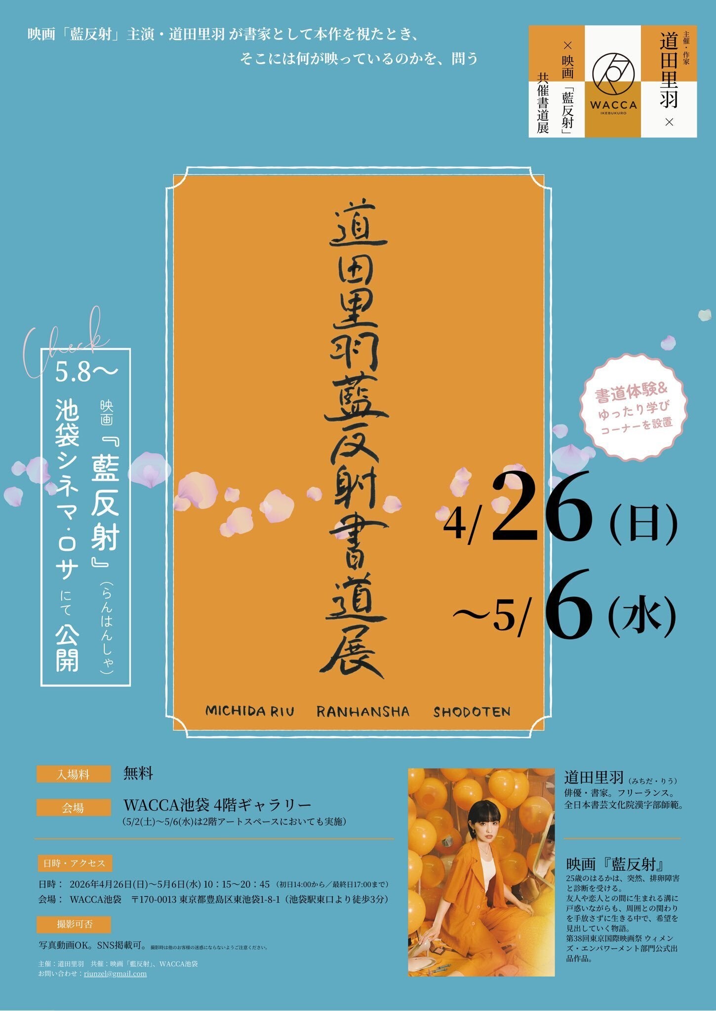 4/26(日)〜5/6(水)までWACCA池袋にて「道田里羽藍反射書道展」を