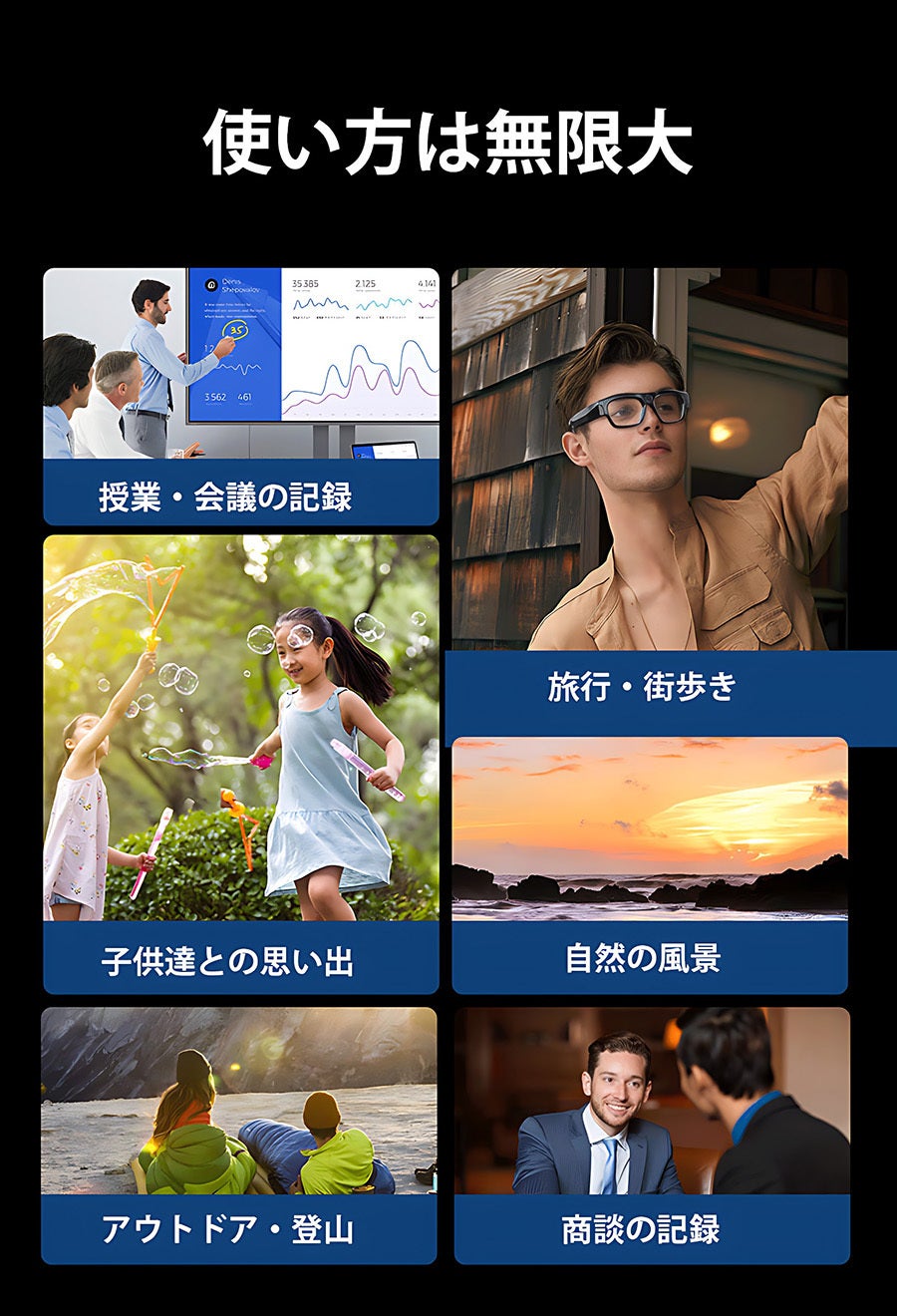 会議や授業、旅行、スポーツ、アウトドア、様々な場面で活躍します。