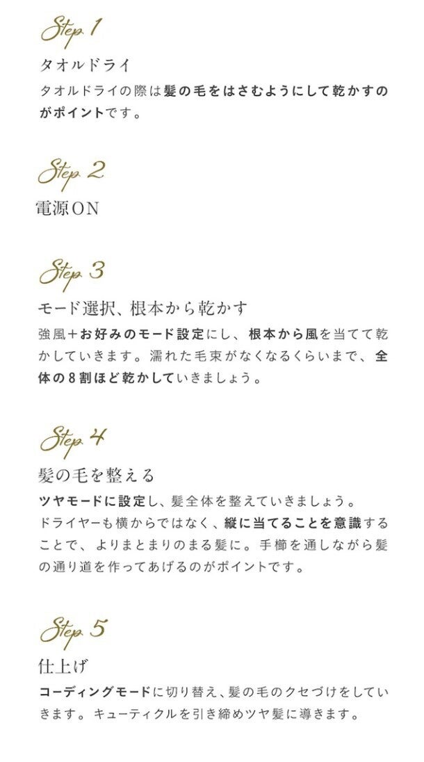 ドライヤーで早く、少ししっとり気味に乾かすことが傷めないポイントです。