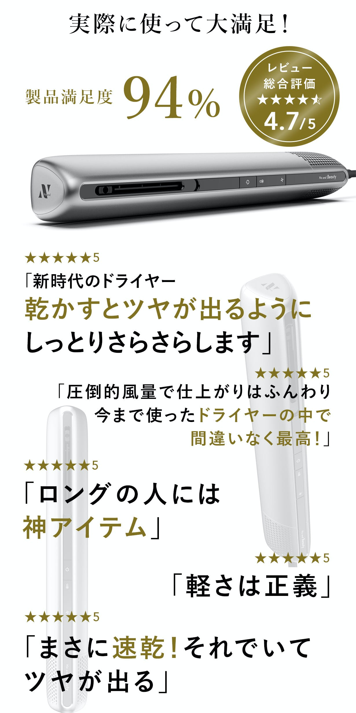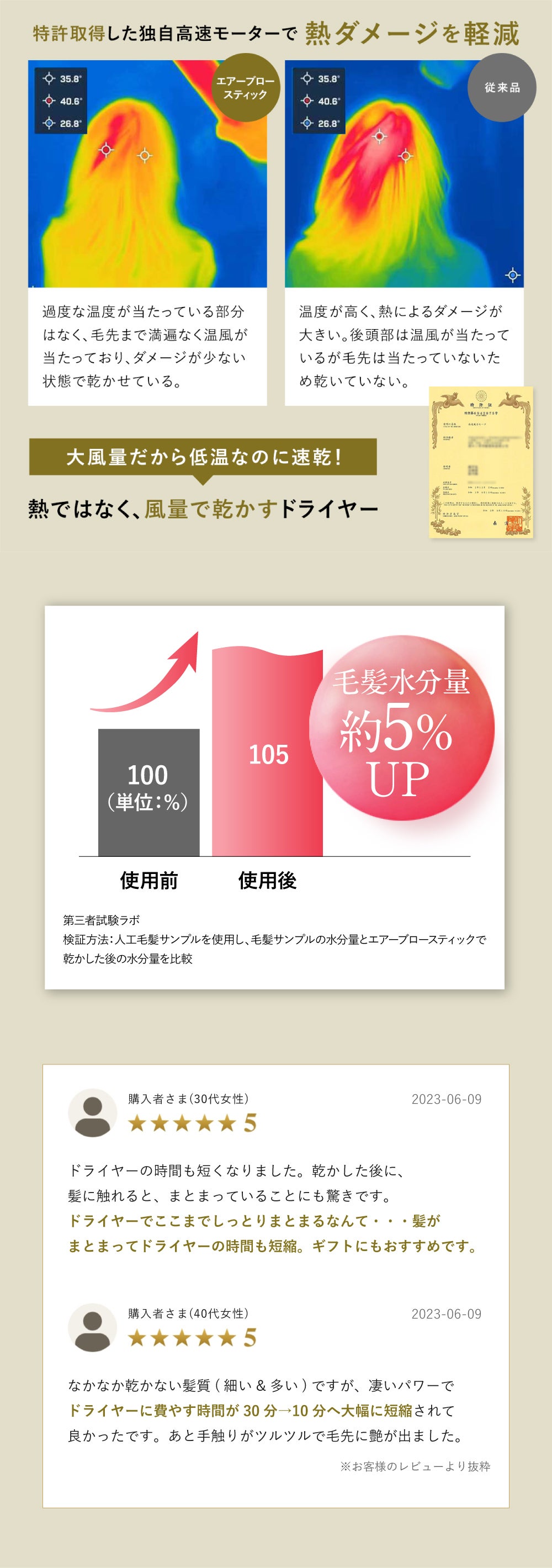 A.通常のドライヤーと変わりませんが、感じ方には個人差があるため、一度お試しいただけますと幸いです。