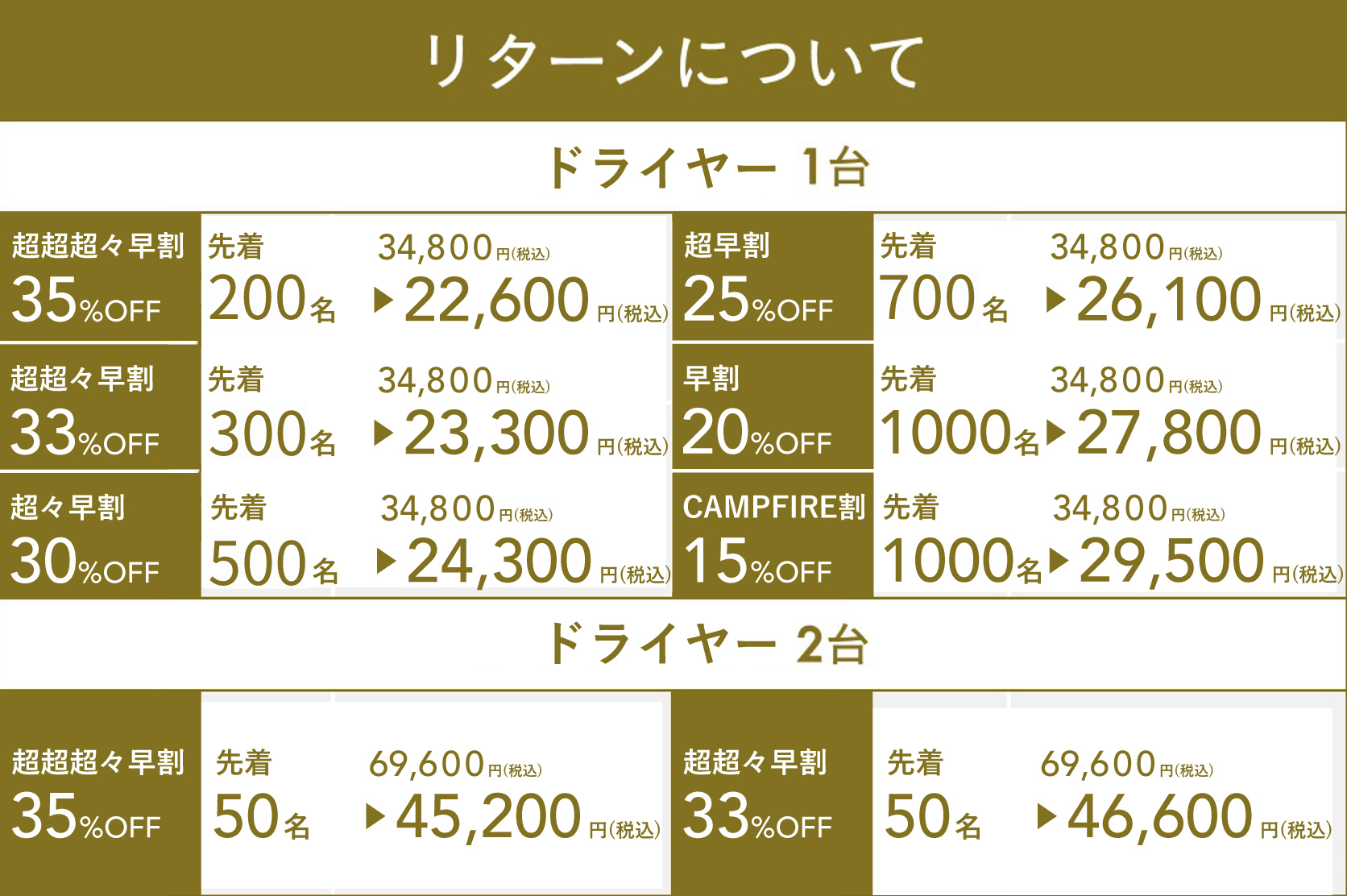 ●リターン価格:各リターン記載の通り *商品内容についてはリターン欄記載の通り