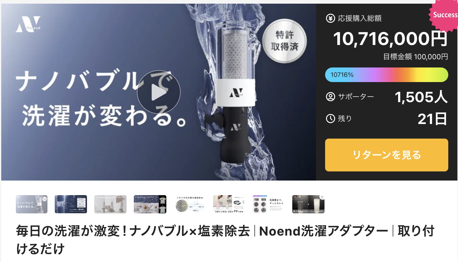 先日ご案内した洗濯アダプタープロジェクトは、応援購入金額1,000万円を突破し、1,500名以上の方にご支援いただいております。