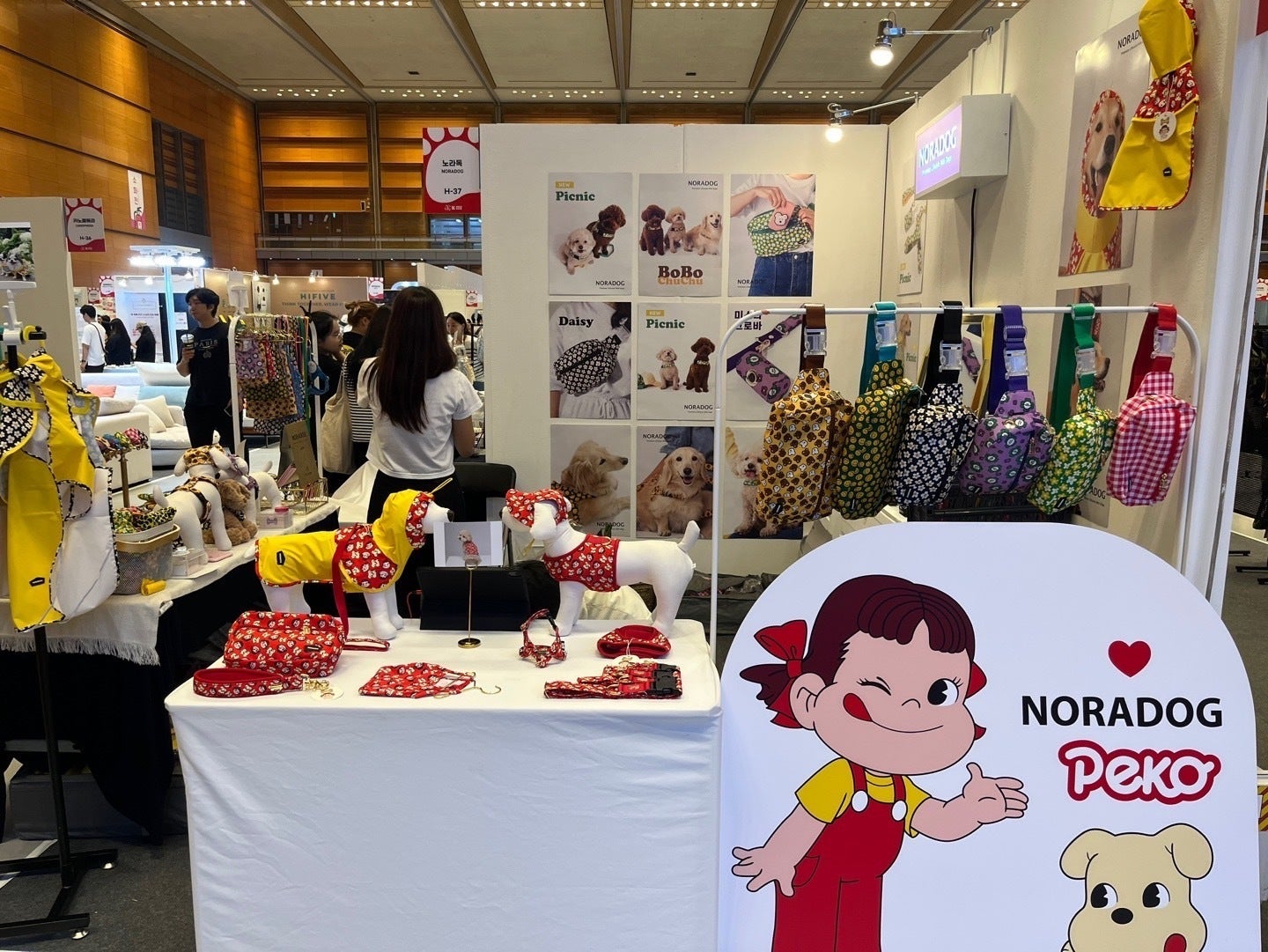 NORADOGは韓国以外にも台湾やヨーロッパでも好評で、ペット用品以外にも散歩用のバッグやポーチもございます。ペットと飼い主のシミラールックでのお散歩も楽しめます。かわいいデザインのものもあればユニセックスに楽しめるデザインもございます。性別や年齢など問わず、様々なお客様にNORADOGを知っていただけるきっかけになればと思いプロジェクトを立ち上げました。