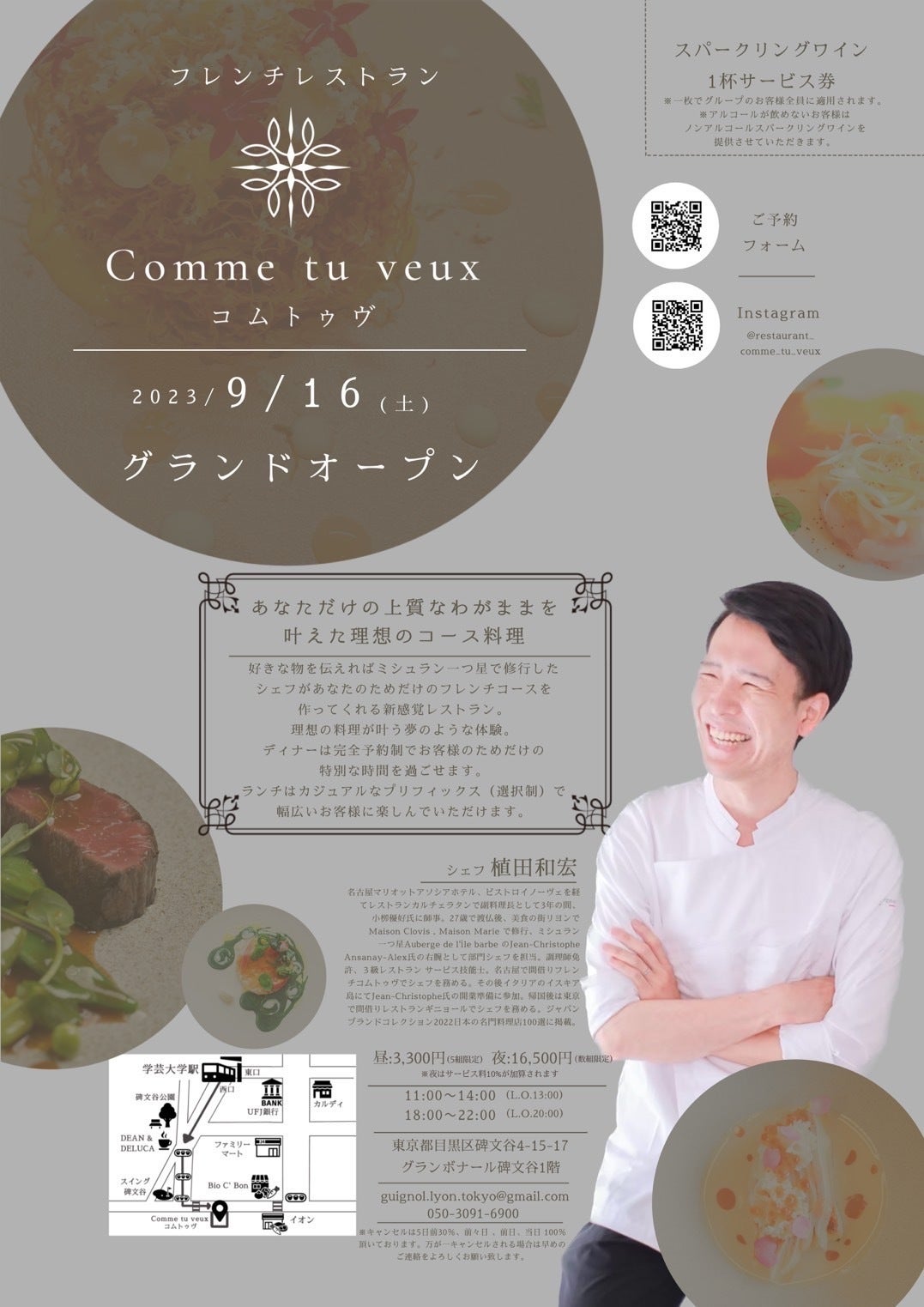 9月16日 業務委託として、レストランcomme tu veux (コムトゥヴ)オープン。