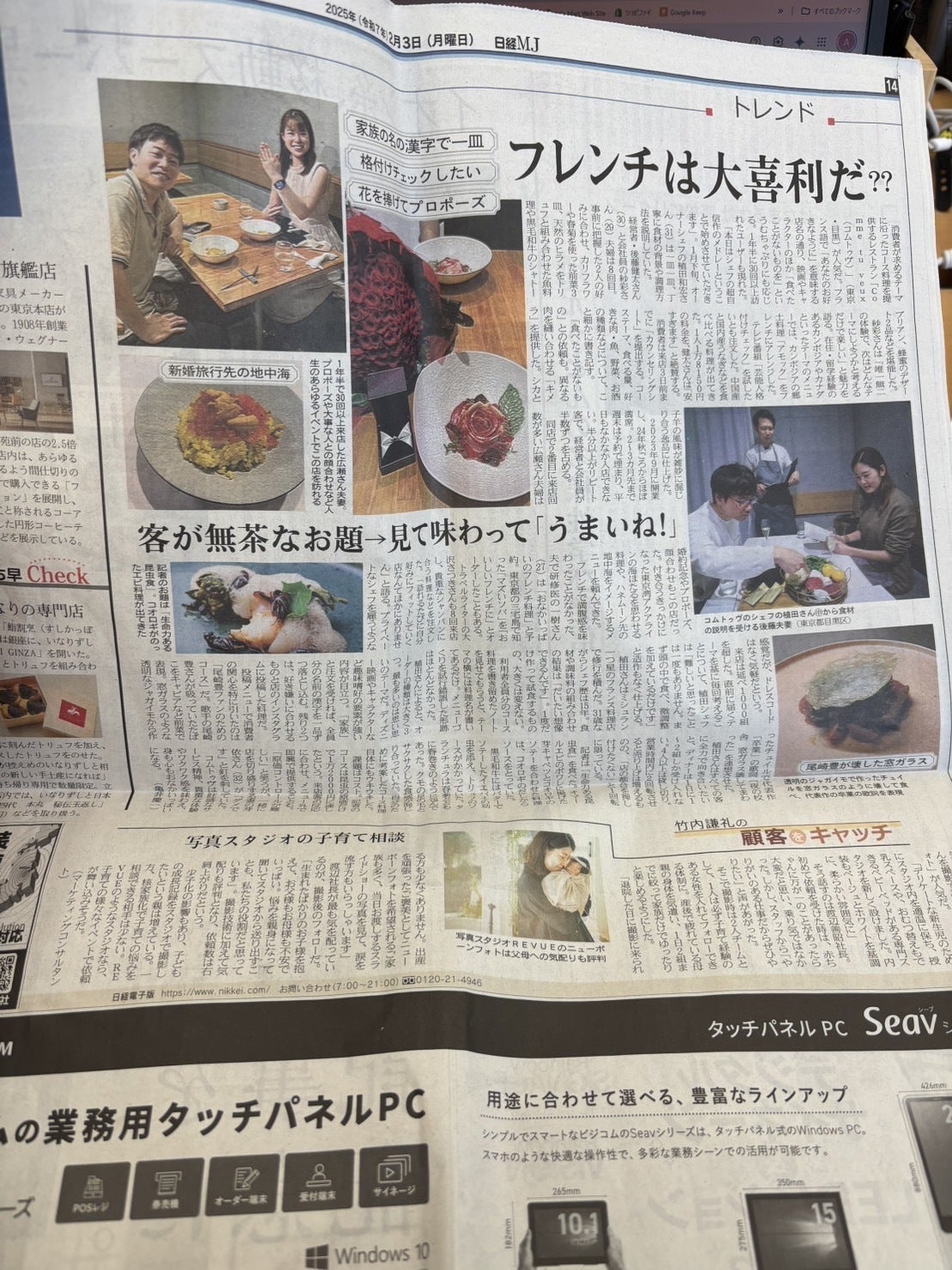 2月3日の日経新聞MJ(トレンド2面に)レストランコムトゥヴを載せていただきました!!