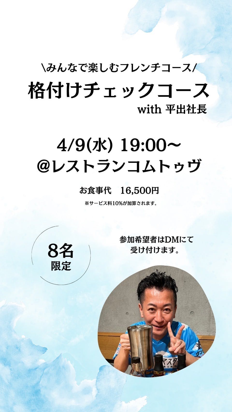 4/9㈬に平出社長と一緒に格付けチェックコースを開催します。