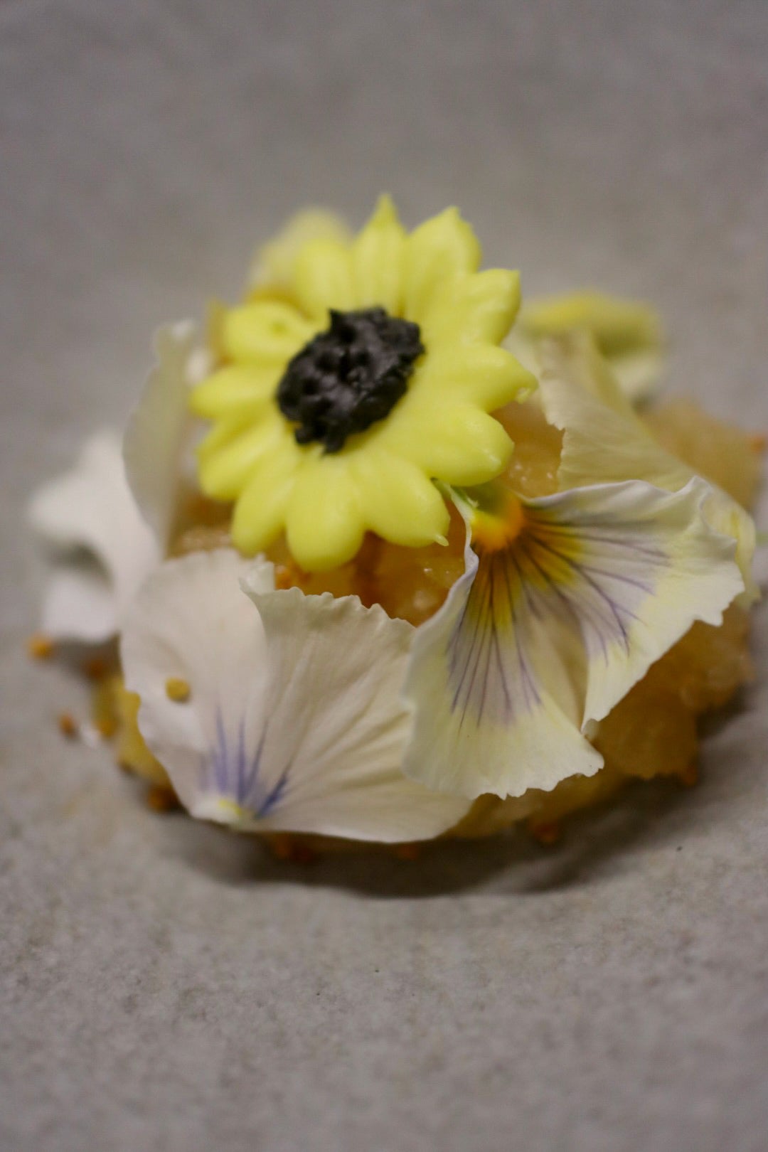 トロールが出てくる場面の歌「愛さえあれば」岩のように見立てたヒラメにトリュフを纏わせ、トロールの世界観を表現。上品で芳醇な香りとともに、“どんな形の愛も大切に”というメッセージを感じられるひと皿です。
