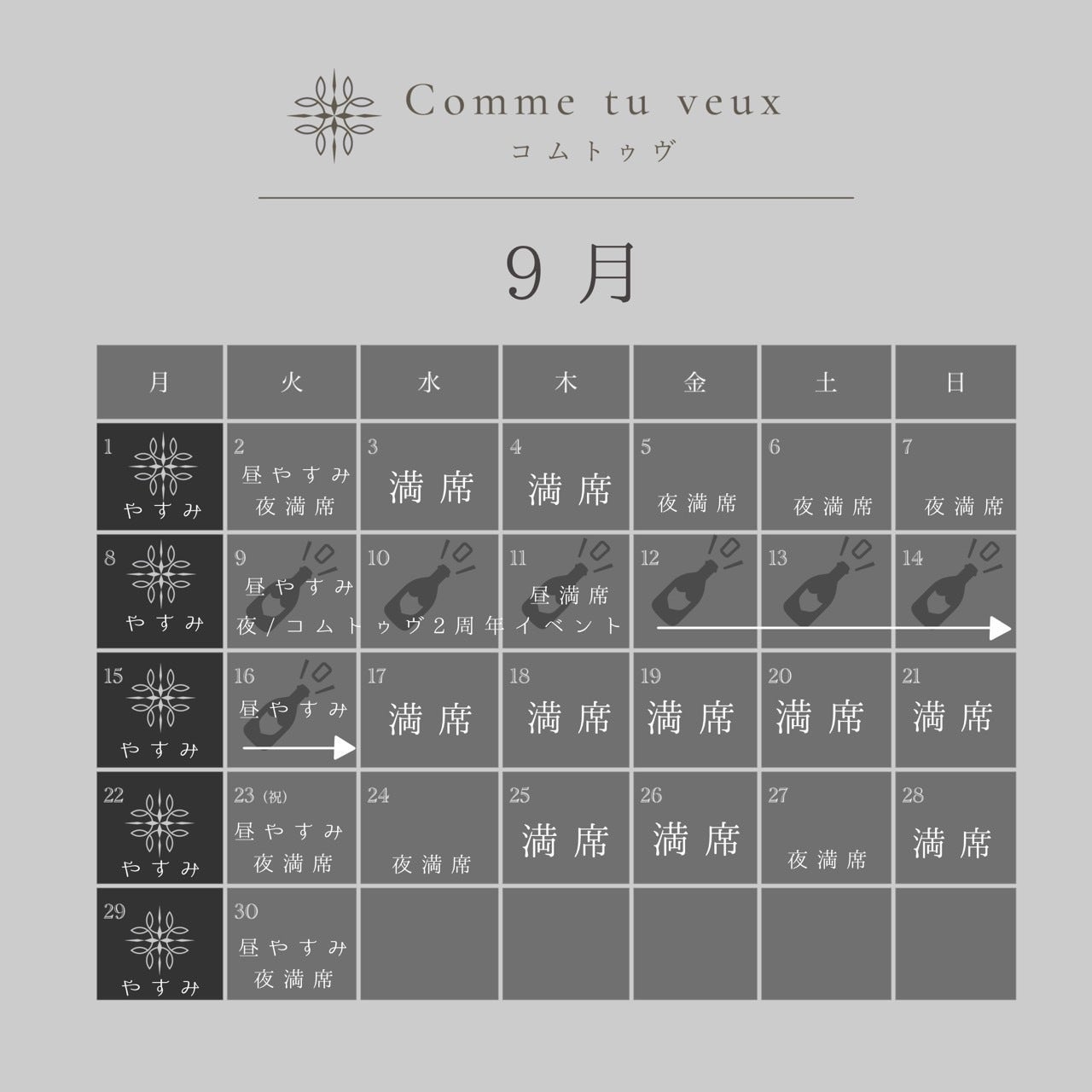 9月のコムトゥヴは、毎日たくさんのご予約をいただき、特に夜は連日満席の日が続きました。