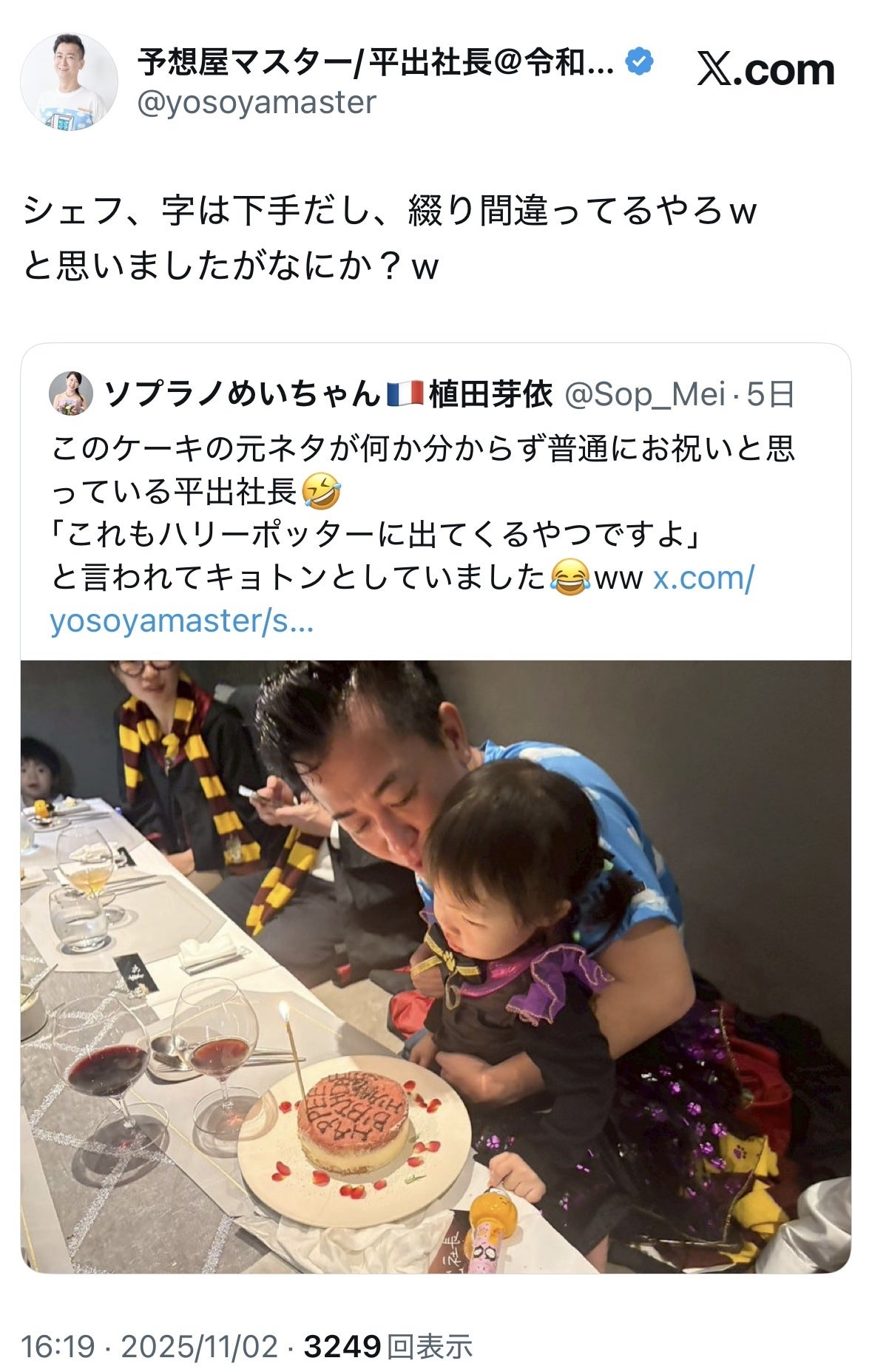 最後には、ハグリッドのケーキのような平出社長のお誕生日ケーキを!