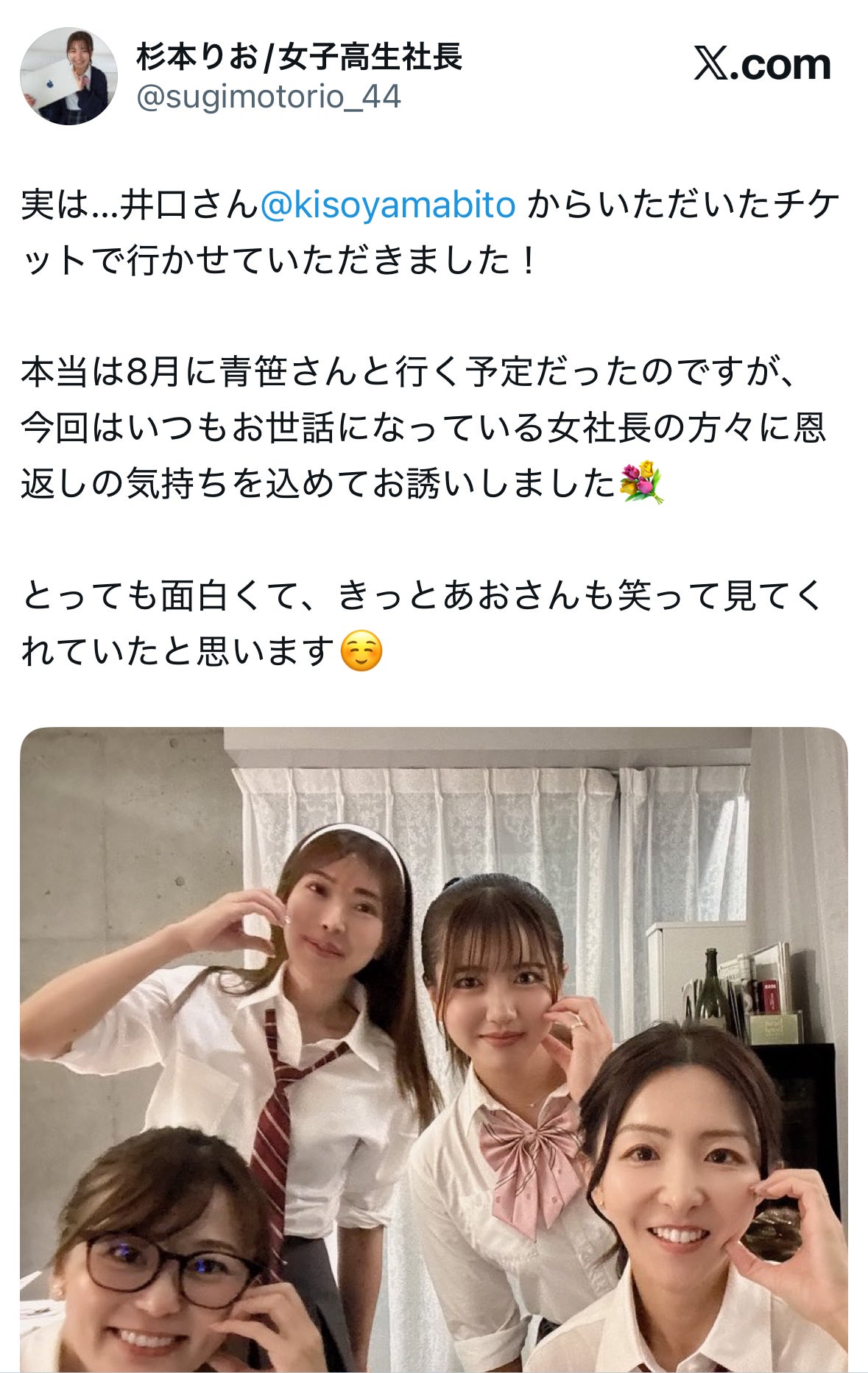 全員で女子高生コスプレという、めったに見られない光景がコムトゥヴに。