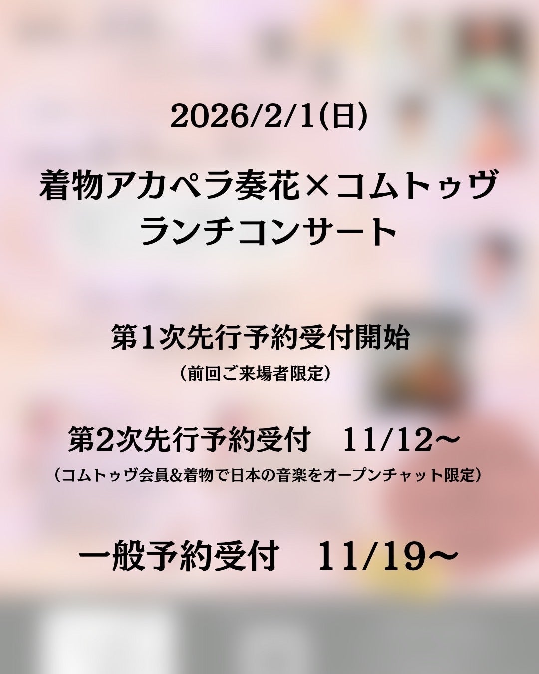 2月1日、コムトゥヴで 着物アカペラ奏花のランチコンサートを開催します!