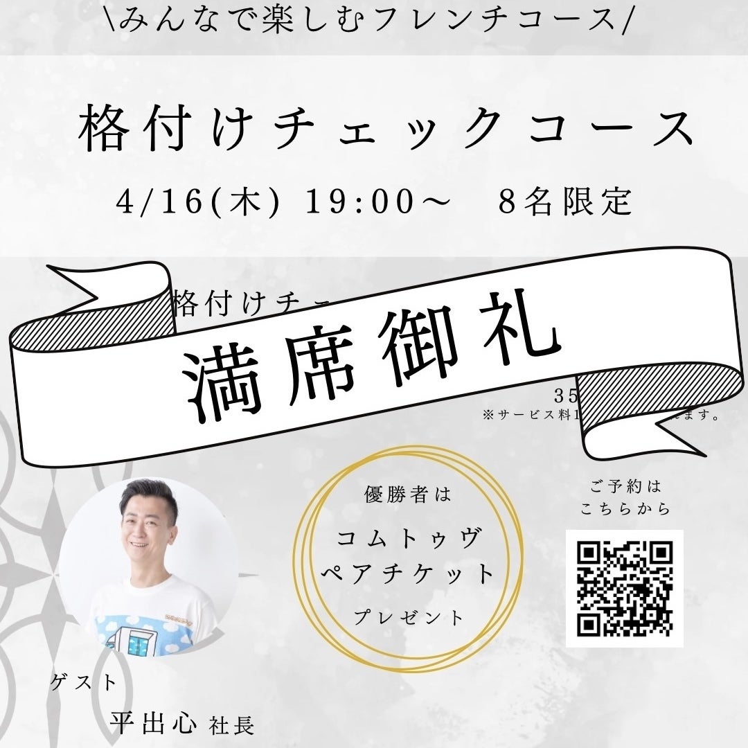 また、オーダーメイドコースで格付けチェックコースをオーダーすることも可能です。4名様以上で貸切となるので、人数を集って貸切でわいわい楽しむのもおすすめとなっています。そして今回の格付けチェックコース、実は コムトゥヴのYouTubeチャンネル でも“ある虎たち”に挑戦していただいた回があります。