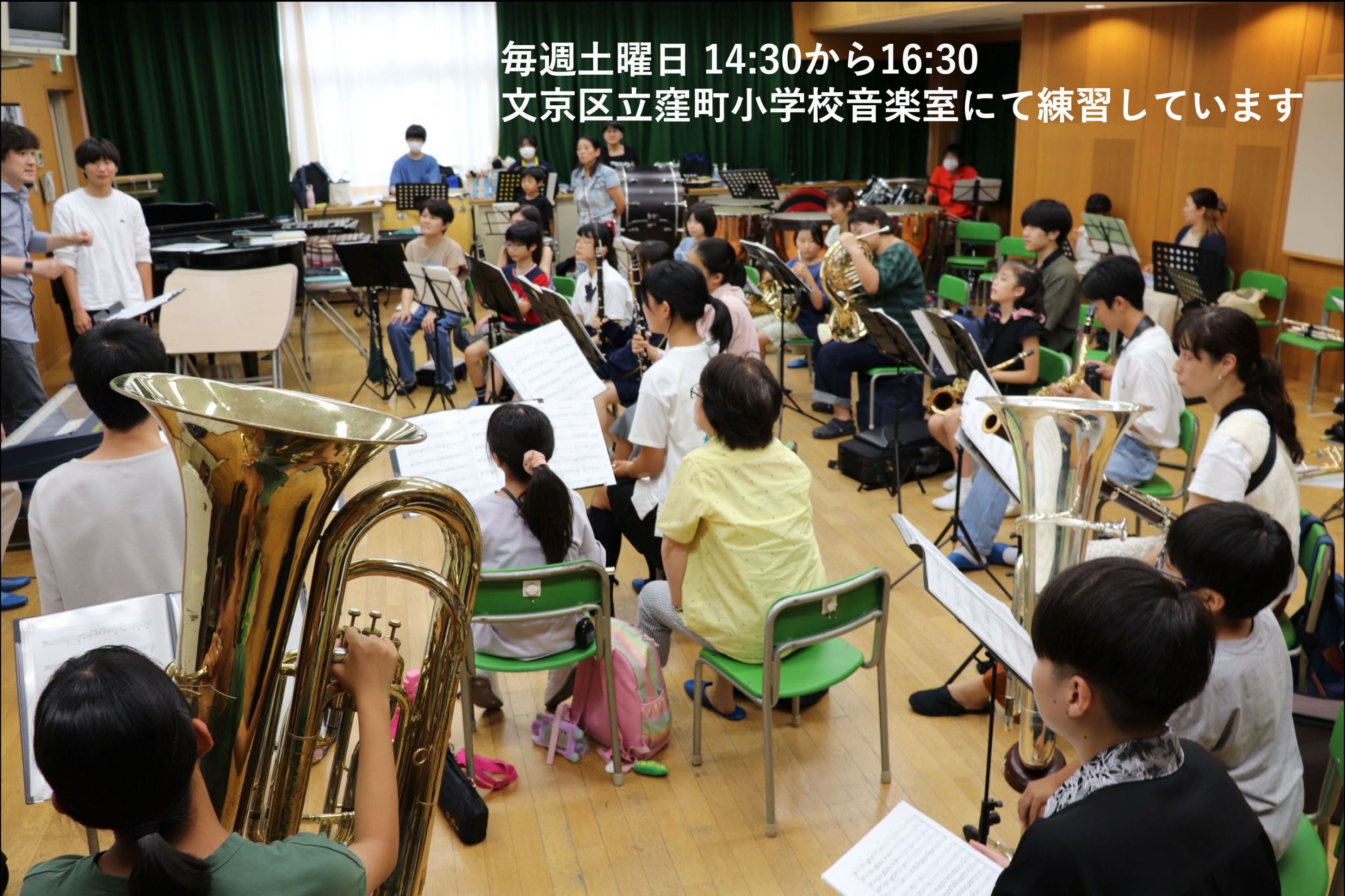 創立当時、文京区立窪町小学校音楽教諭であられた岩崎弘先生(2003年ご逝去)の並々ならぬご支援で、社会教育の一環としてこの地域に吹奏楽団が発足して以来、多くの卒団生を輩出し、2024年には創立50周年を迎えます。