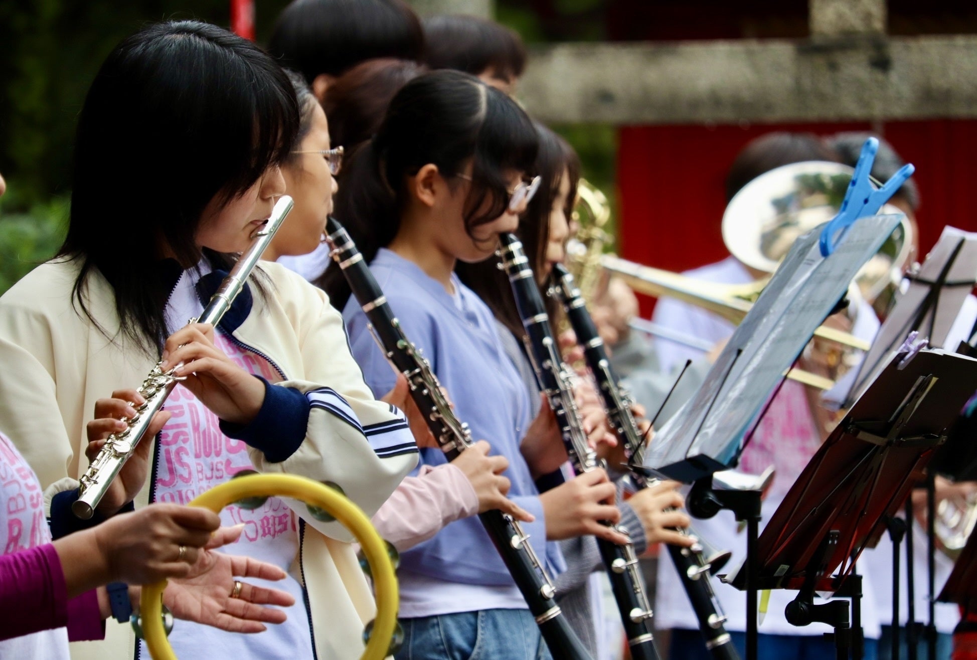 本来は根津神社境内にて「文京青少年吹奏楽団」の皆さんと合同で、迫力のある演奏をお届けする予定でしたが残念ながら雨のため中止となり、アンサンブルのみの演奏となりました。